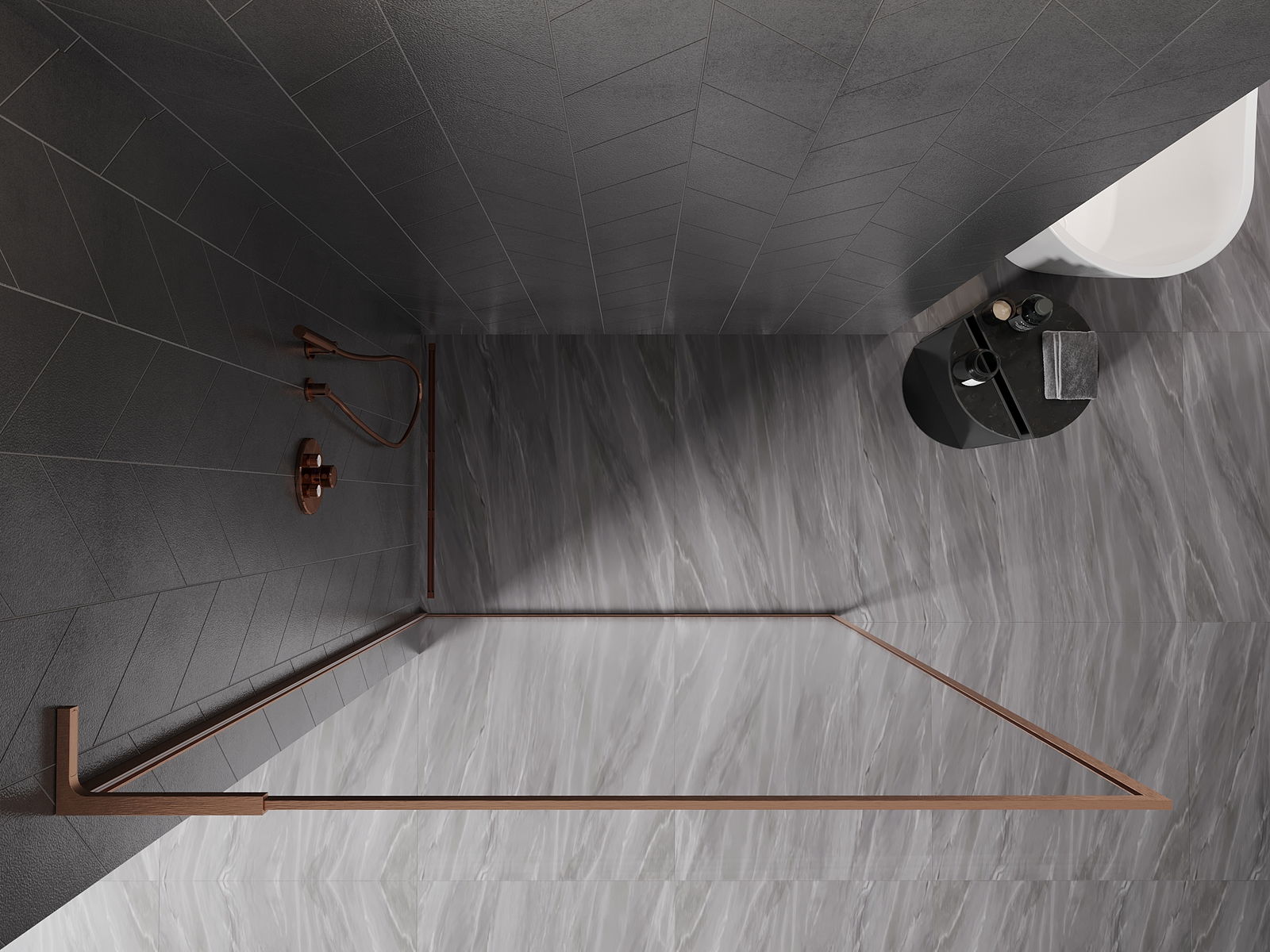 Mexen Kioto-XF L Walk-in Shower Screen with Frame 60 x 202 cm, 10 mm Transparent, Brushed Copper - 800-060-174-65-00-XF