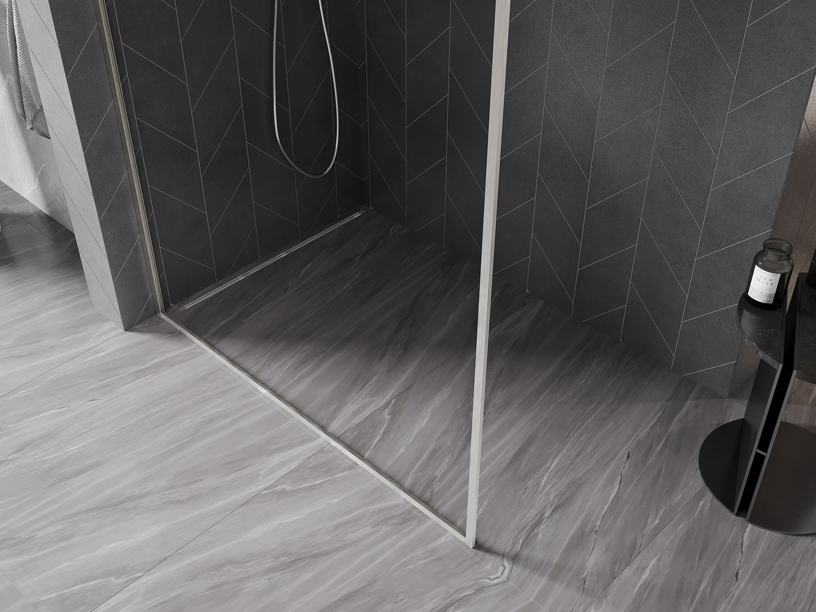 Mexen Kioto-XF L shower wall Walk-in with frame 80 x 202 cm, transparent 10 mm, brushed nickel - 800-080-174-97-00-XF