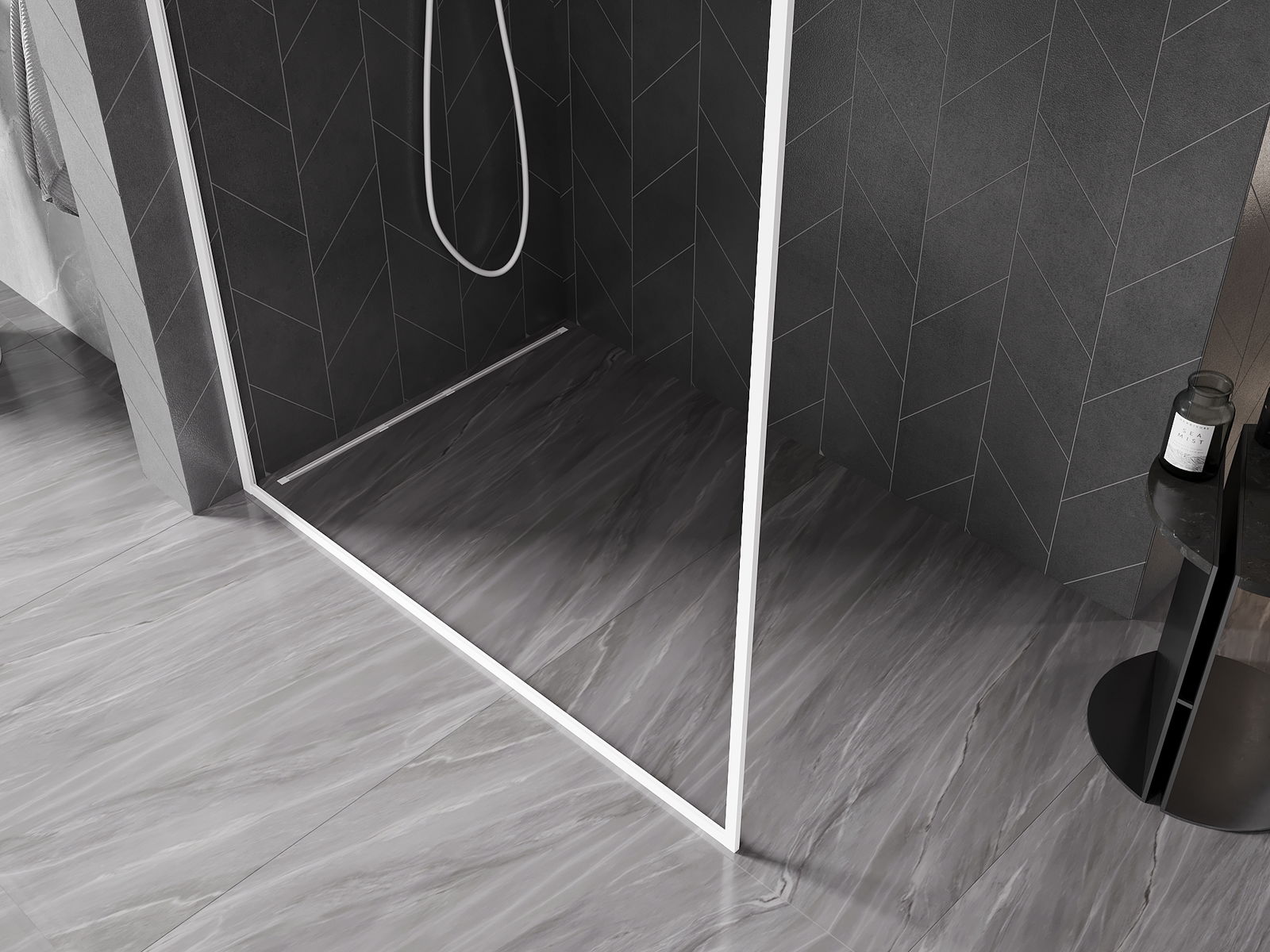 Mexen Kioto-F L Walk-in Shower Wall with Frame 105 x 202 cm, Transparent 8 mm, White - 800-105-174-20-00