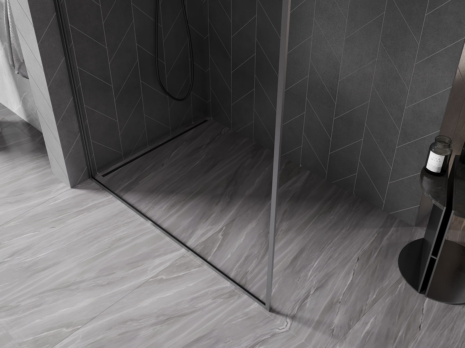 Mexen Kioto-F L Walk-in Shower Wall with Frame 50 x 202 cm, Transparent 8 mm, Brushed Gun Gray - 800-050-174-66-00