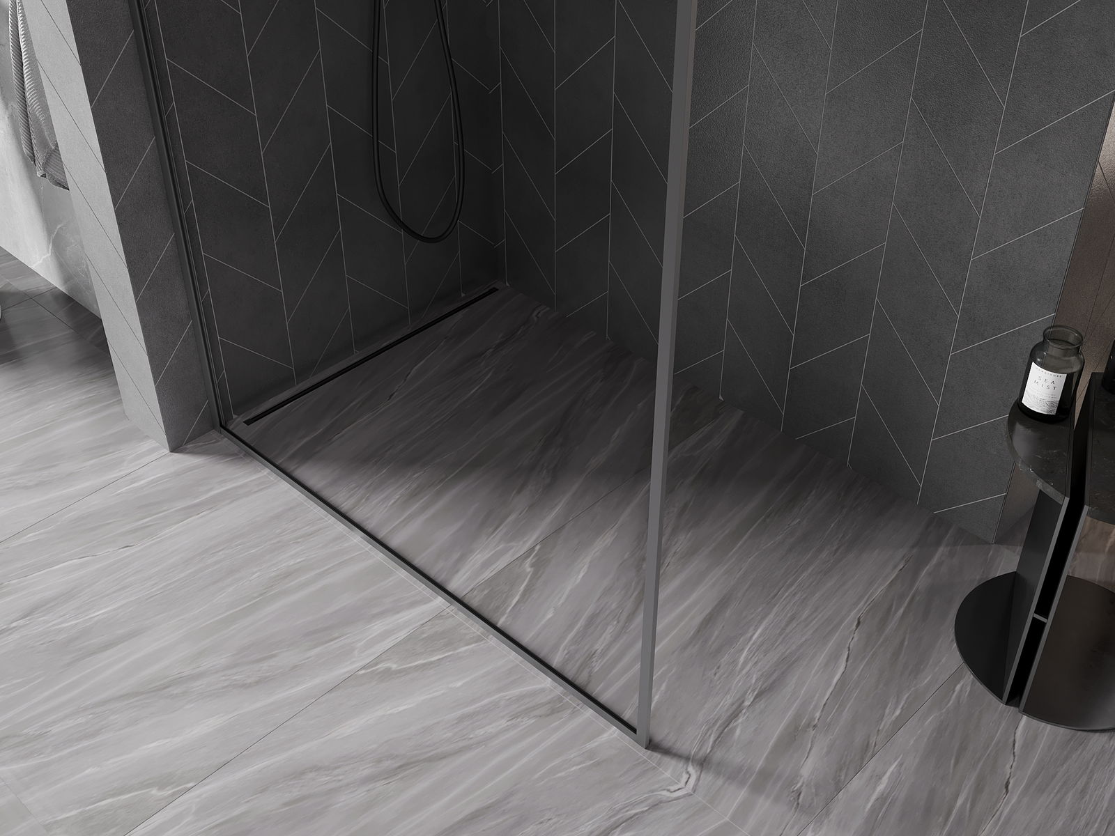 Mexen Kioto-F L Walk-in Shower Wall with Frame 75 x 202 cm, Transparent 8 mm, Gun Metal - 800-075-174-95-00