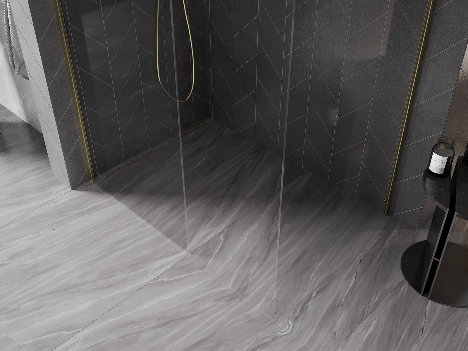 Mexen Kioto-X Shower Wall Walk-in 120 x 90 cm, Transparent 10 mm, Brushed Gold - 800-120-202-55-00-090-X