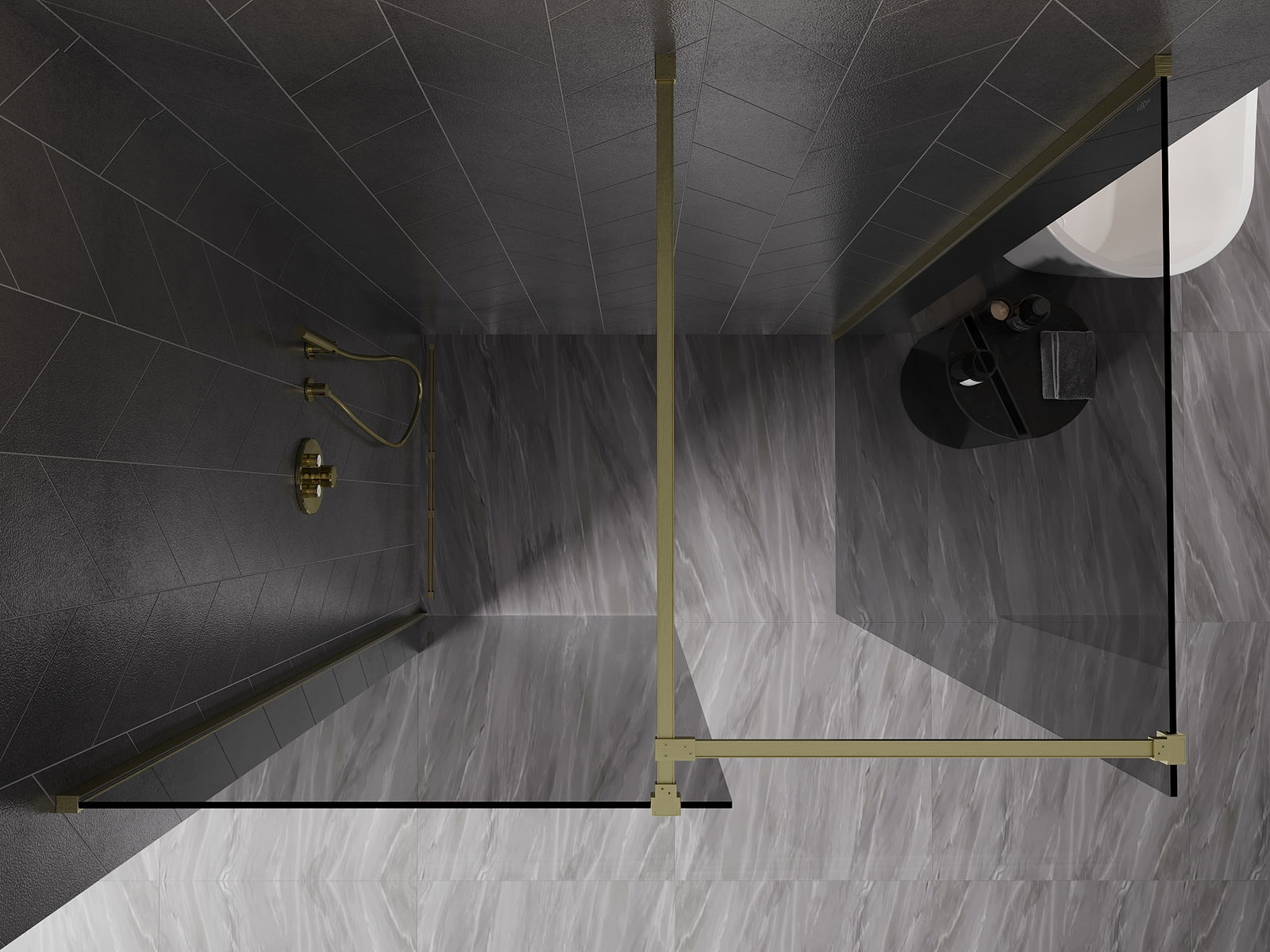 Mexen Kioto-X Walk-in Shower Screen 150 x 90 cm, Transparent 10 mm, Brushed Gold - 800-150-202-55-00-090-X