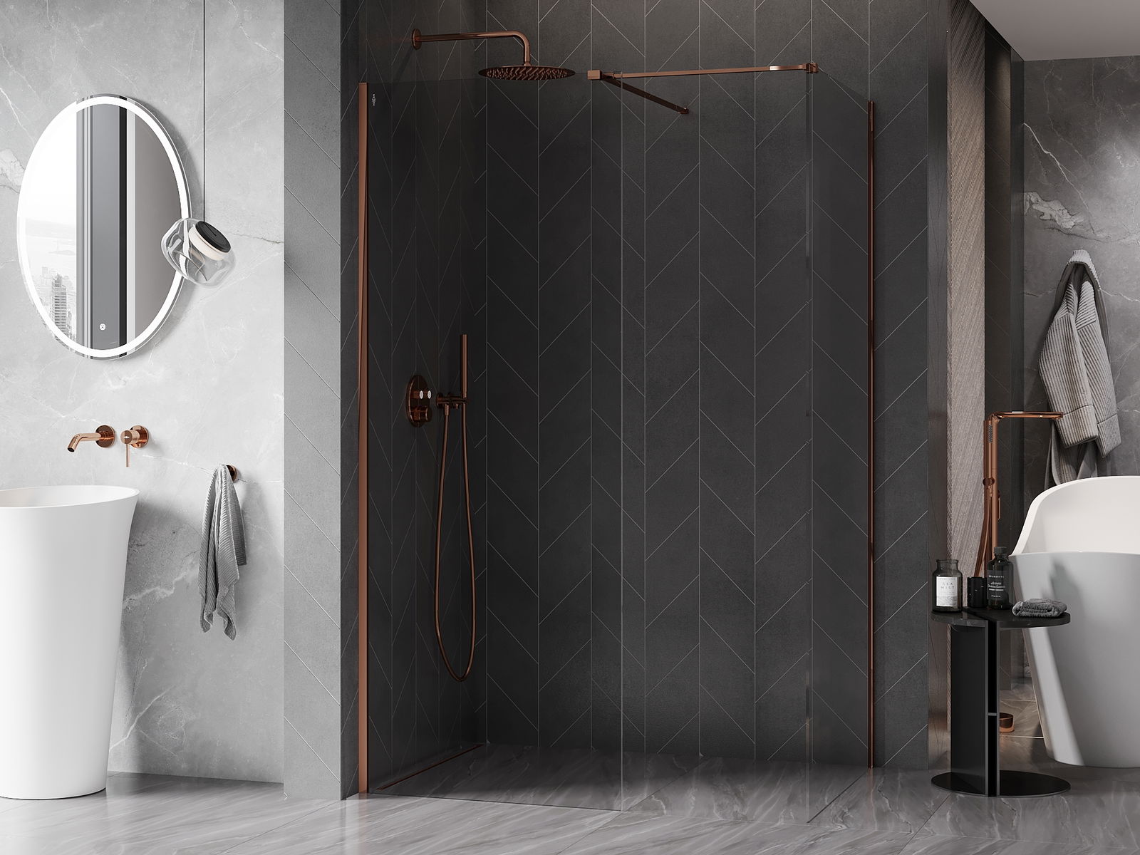 Mexen Kioto-X Walk-in Shower Wall 130 x 90 cm, Transparent 10 mm, Rose Gold - 800-130-202-60-00-090-X