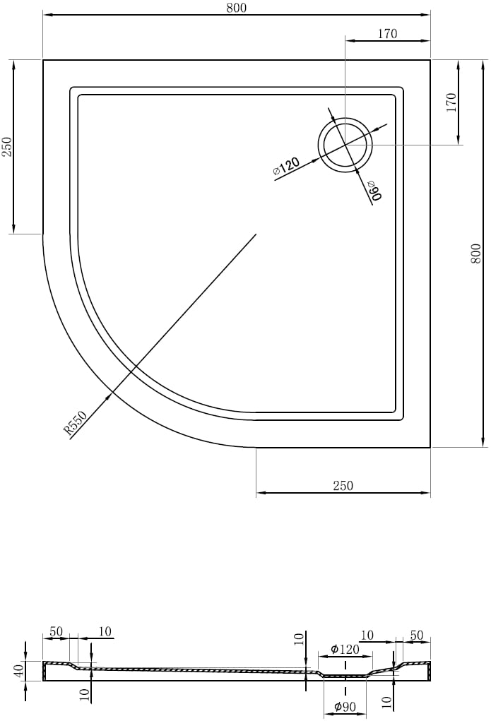 The shower tray is designed in such a way that water can freely flow towards the drain. It ensures quick and effective drainage of water from the surface of the shower tray, preventing the formation of puddles and flooding the bathroom.