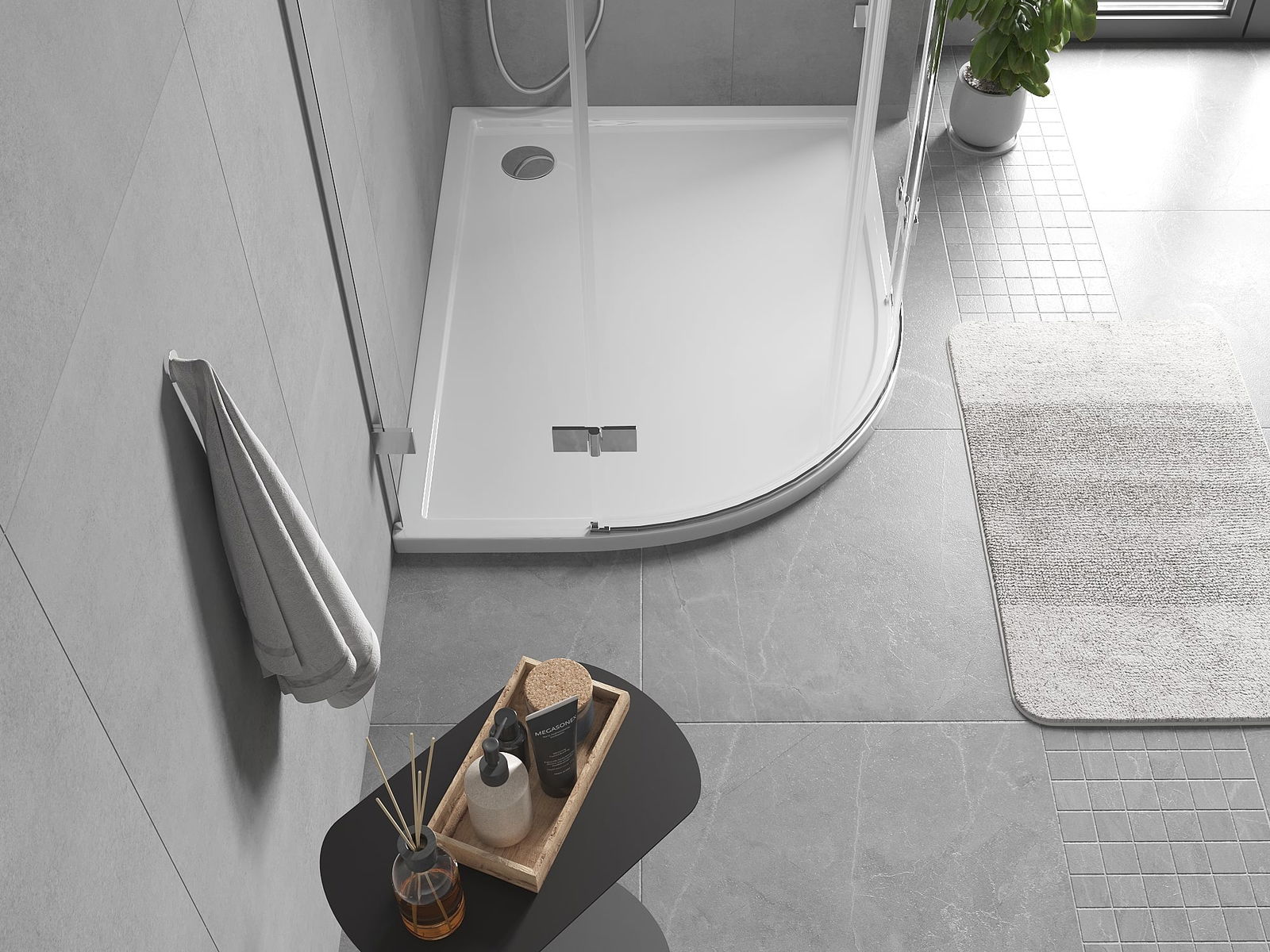 The shower tray is designed in such a way that water can freely flow towards the drain. It ensures quick and effective drainage of water from the surface of the shower tray, preventing the formation of puddles and flooding the bathroom.