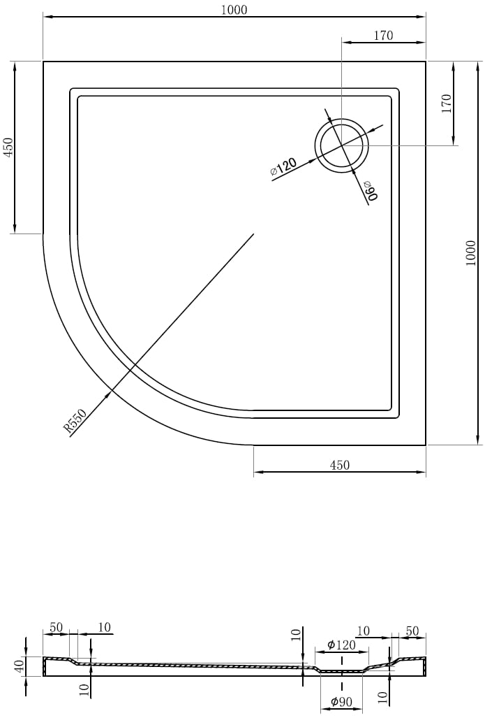 The shower tray is designed in such a way that water can freely flow towards the drain. It ensures quick and effective drainage of water from the surface of the shower tray, preventing the formation of puddles and flooding the bathroom.