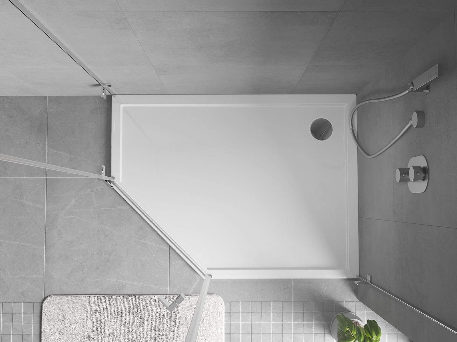The shower tray is designed in such a way that water can freely flow towards the drain. It ensures quick and effective drainage of water from the surface of the shower tray, preventing the formation of puddles and flooding the bathroom.