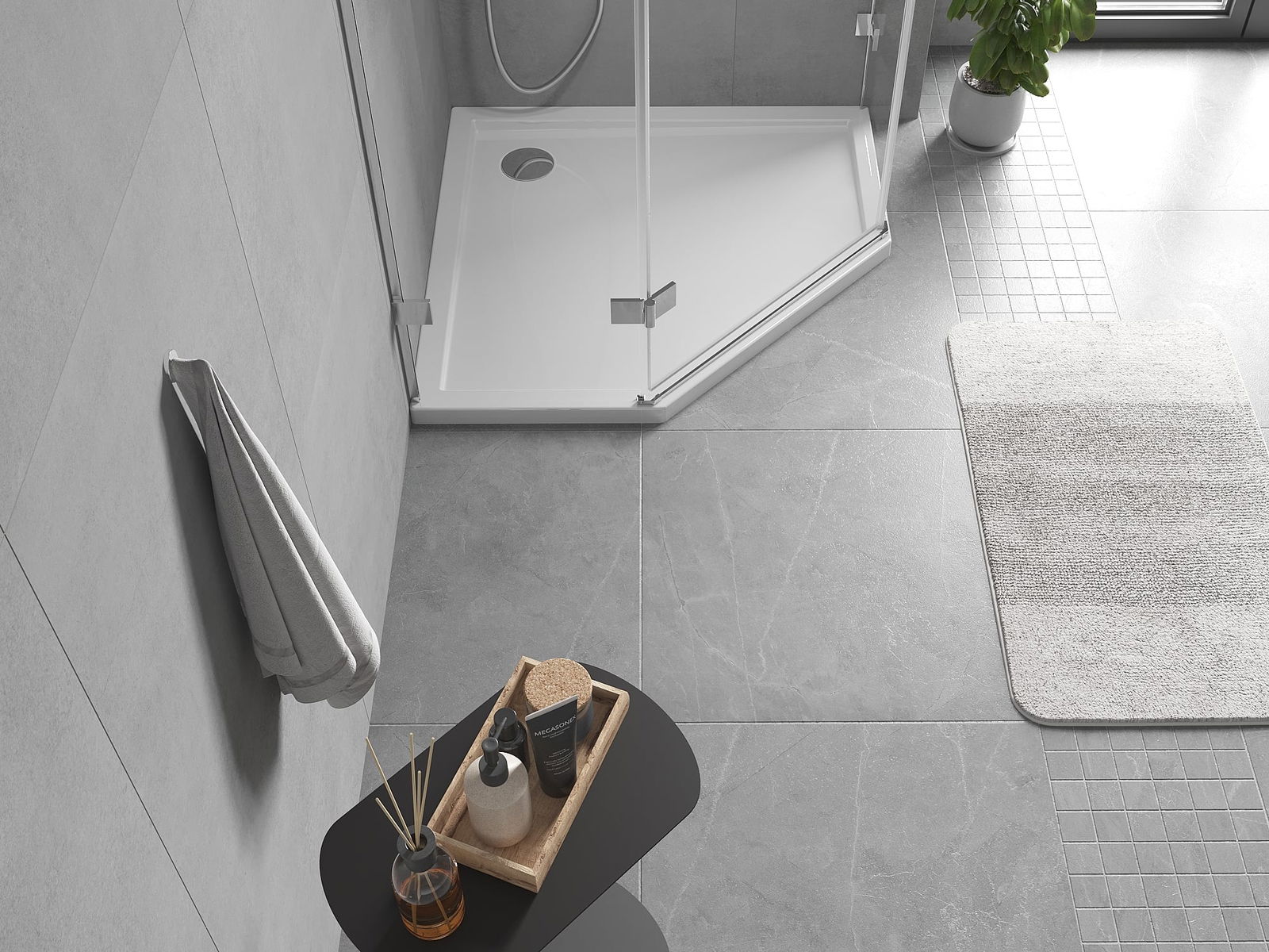 The shower tray is designed in such a way that water can freely flow towards the drain. It ensures quick and effective drainage of water from the surface of the shower tray, preventing the formation of puddles and flooding the bathroom.