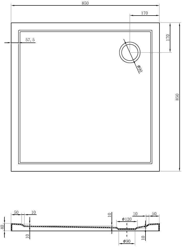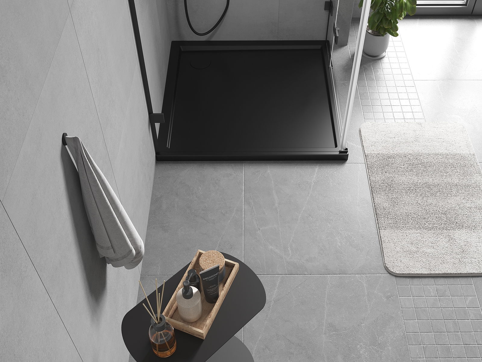 The shower tray is designed in such a way that water can freely flow towards the drain. It ensures quick and effective drainage of water from the surface of the shower tray, preventing the formation of puddles and flooding the bathroom.