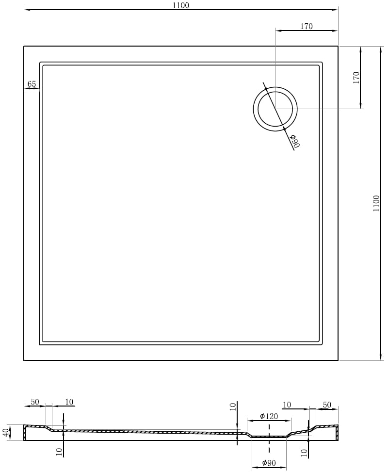 The shower tray is designed in such a way that water can freely flow towards the drain. It ensures quick and effective drainage of water from the surface of the shower tray, preventing the formation of puddles and flooding the bathroom.