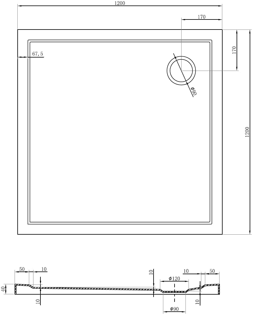 Drain diameter: 90 mm