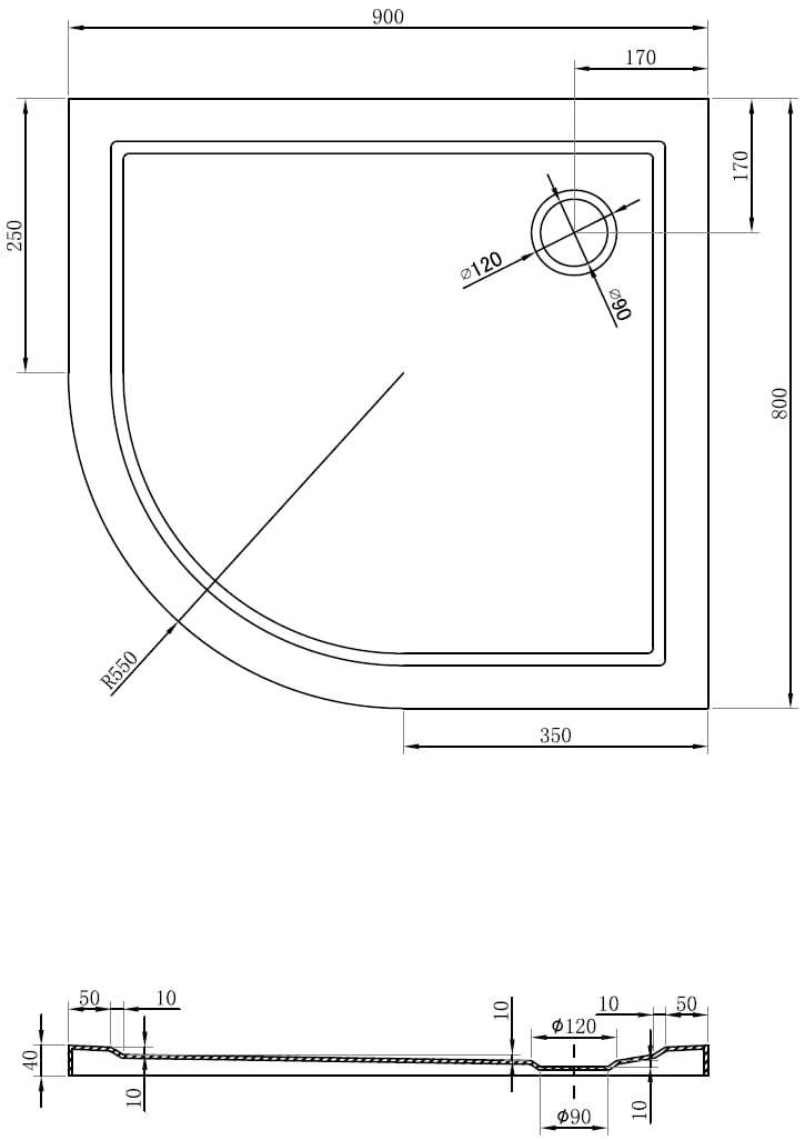 The shower tray is designed in such a way that water can freely flow towards the drain. It ensures quick and effective drainage of water from the surface of the shower tray, preventing the formation of puddles and flooding the bathroom.