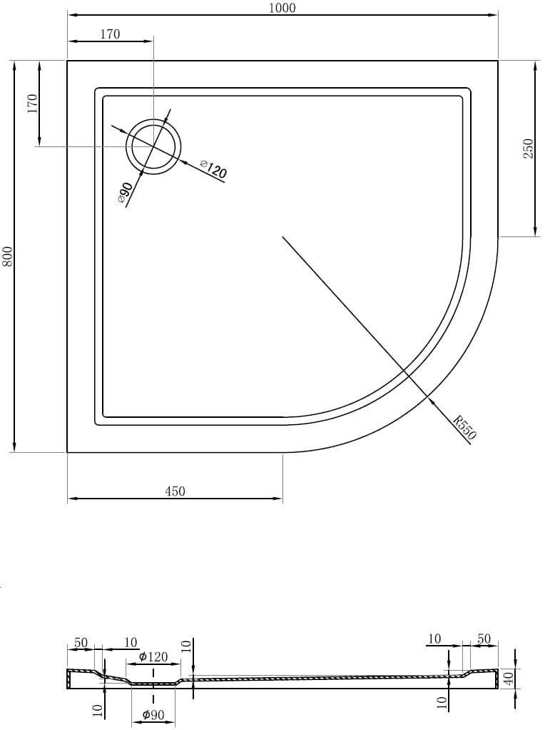The shower tray is designed in such a way that water can freely flow towards the drain. It ensures quick and effective drainage of water from the surface of the shower tray, preventing the formation of puddles and flooding the bathroom.