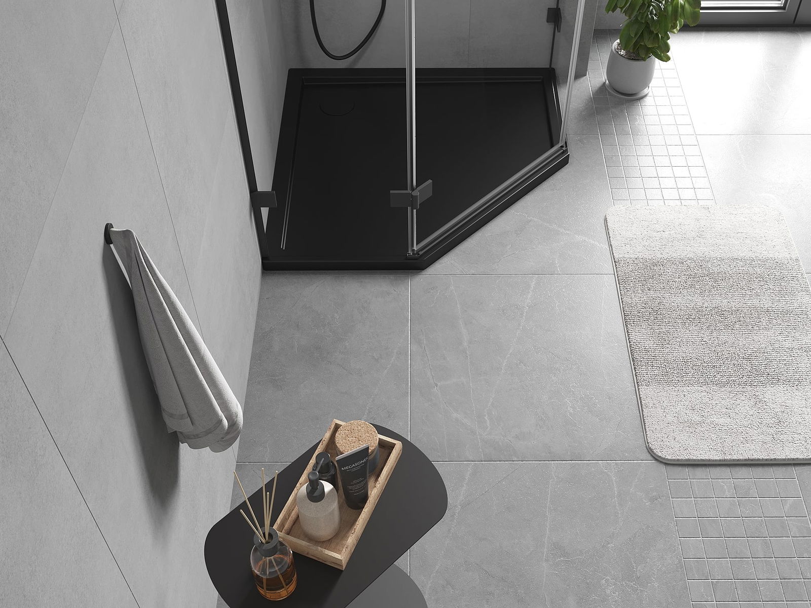 The shower tray has a low threshold, which makes it easier to enter and exit the shower. It adds a unique and timeless finish to the room, making the bathroom a comfortable and aesthetically pleasing place for daily relaxation.