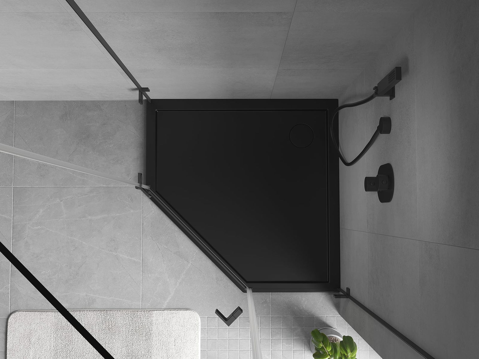 Mexen Flow pentagonal slim shower tray 100 x 100 cm, black matte - 46P701010
