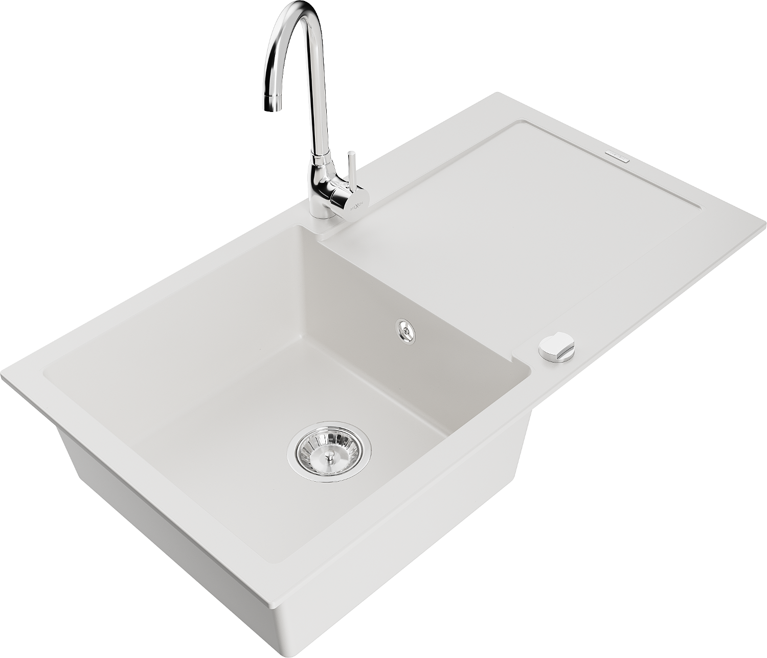 Mexen Leo granite sink 1-bowl with drainer and Telma kitchen tap, white - 6501-20-670200-00