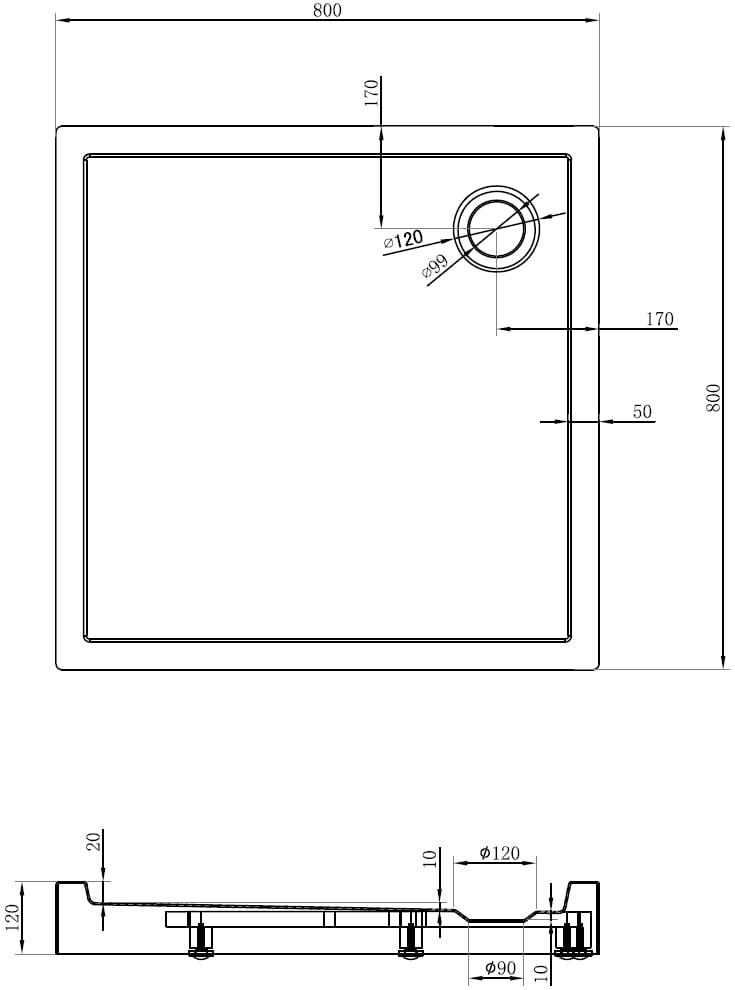 The shower tray is designed in such a way that water can freely flow towards the drain. It ensures quick and effective drainage of water from the surface of the shower tray, preventing the formation of puddles and flooding the bathroom.