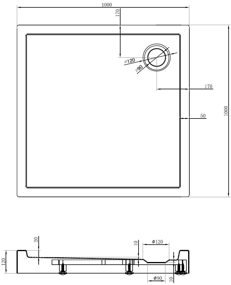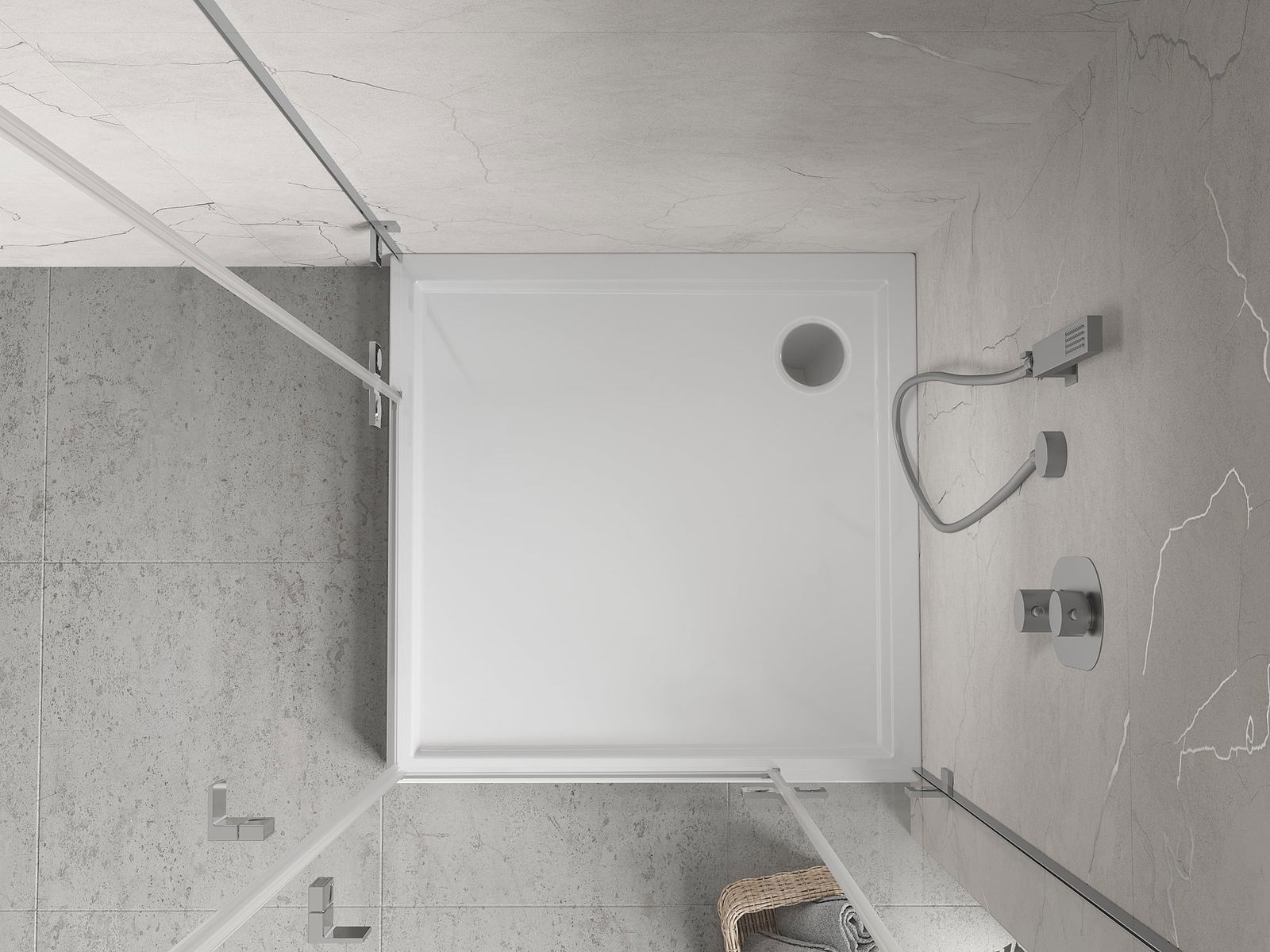 The shower tray is designed in such a way that water can freely flow towards the drain. It ensures quick and effective drainage of water from the surface of the shower tray, preventing the formation of puddles and flooding the bathroom.