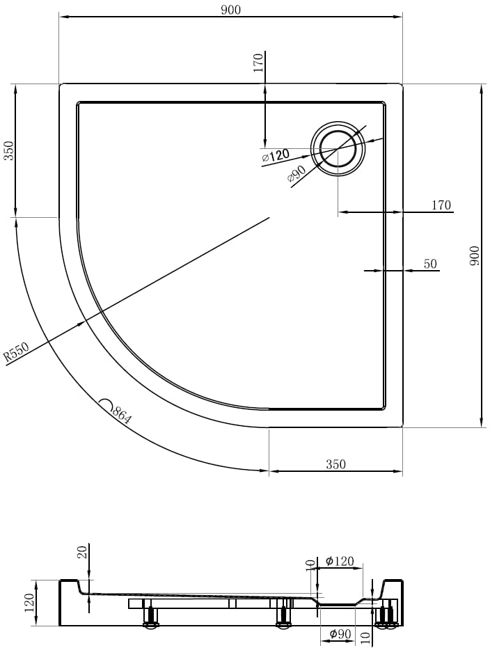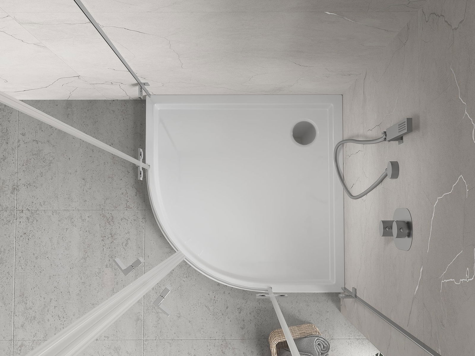 The shower tray is designed in such a way that water can freely flow towards the drain. It ensures quick and effective drainage of water from the surface of the shower tray, preventing the formation of puddles and flooding the bathroom.