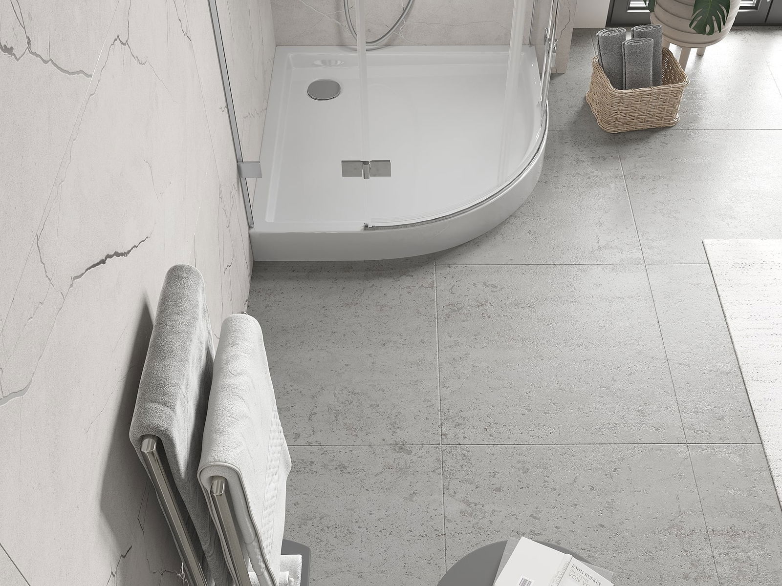 The shower tray is designed in such a way that water can freely flow towards the drain. It ensures quick and effective drainage of water from the surface of the shower tray, preventing the formation of puddles and flooding the bathroom.