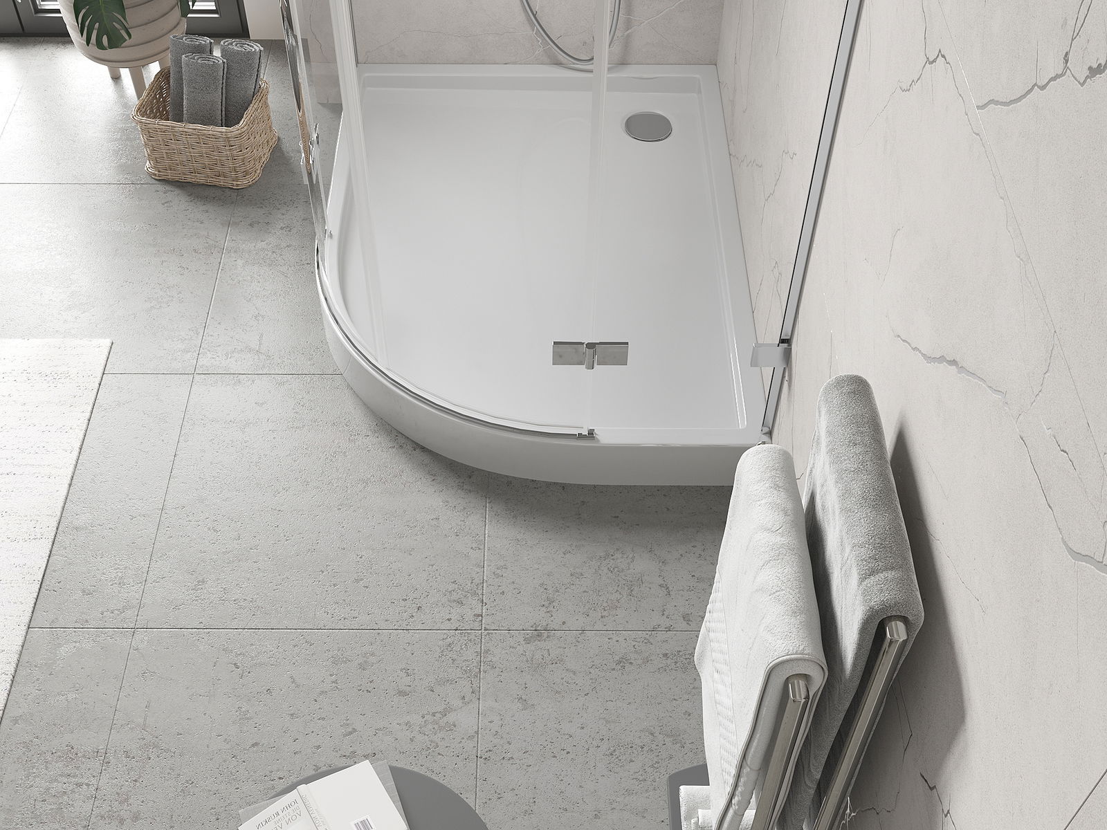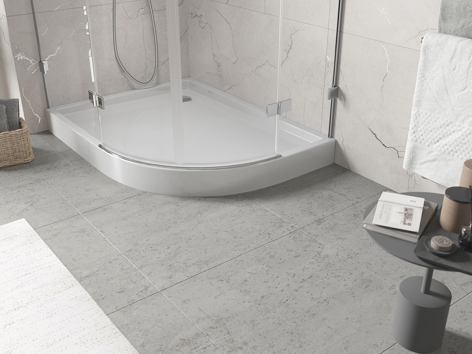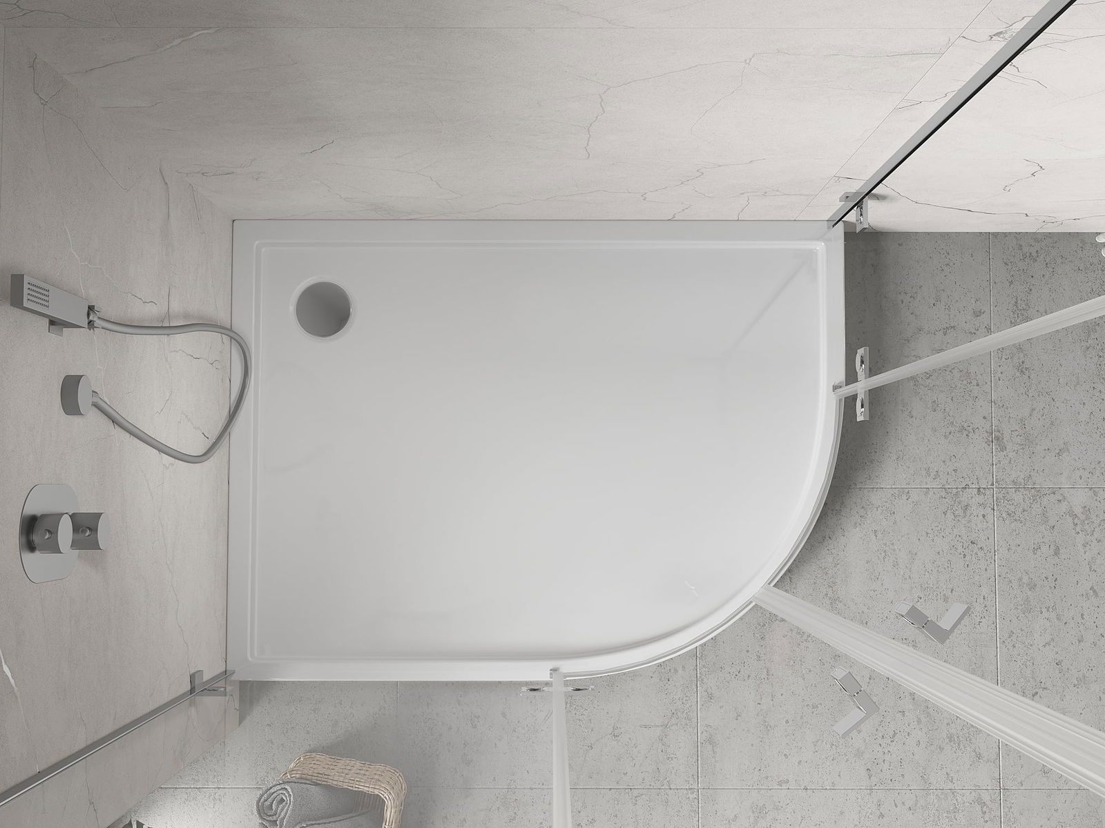 The shower tray is designed in such a way that water can freely flow towards the drain. It ensures quick and effective drainage of water from the surface of the shower tray, preventing the formation of puddles and flooding the bathroom.