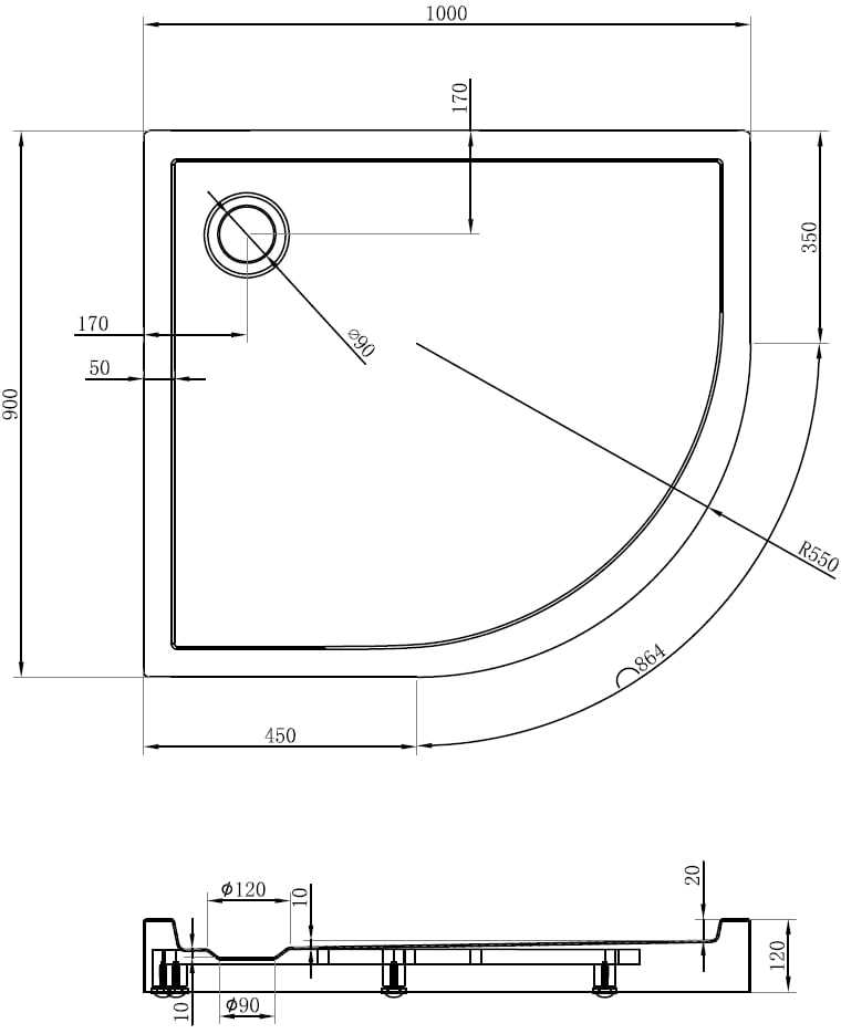 The shower tray is designed in such a way that water can freely flow towards the drain. It ensures quick and effective drainage of water from the surface of the shower tray, preventing the formation of puddles and flooding the bathroom.