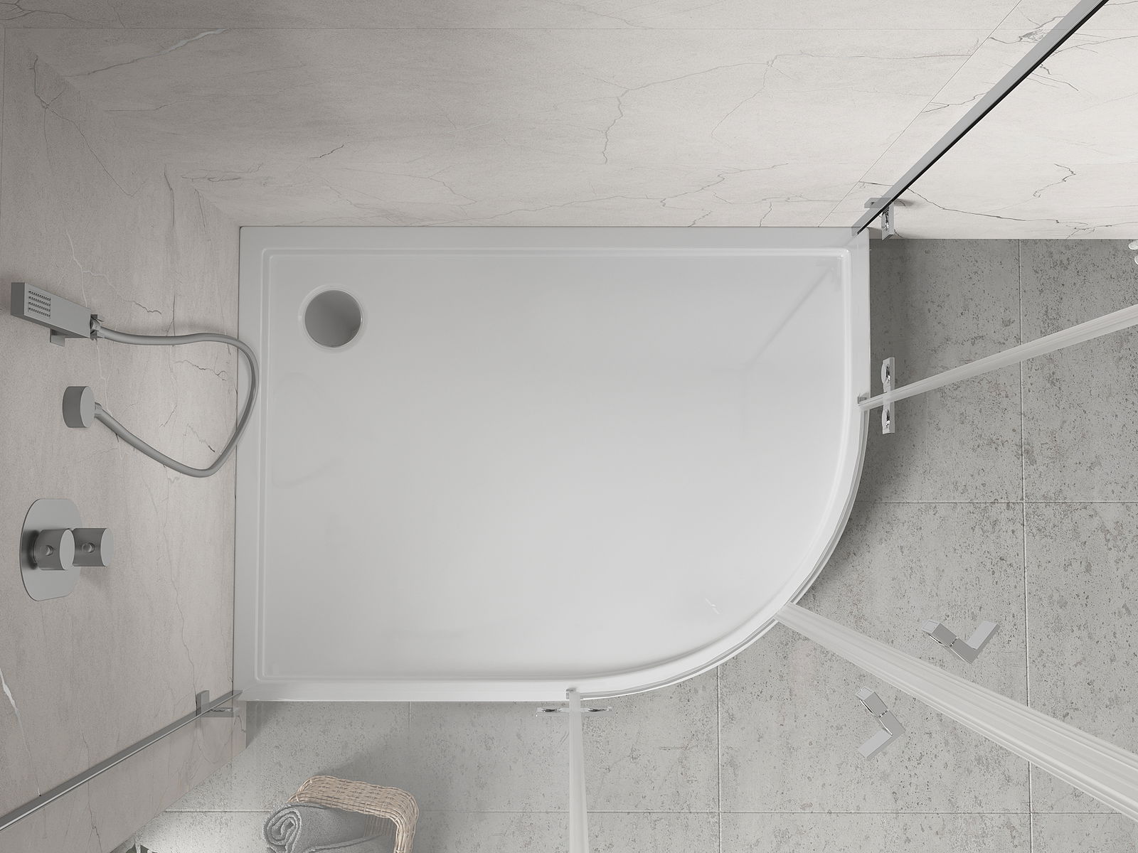 Mexen Flow+ asymmetric left semi-circular shower tray 100 x 90 cm, white gloss - 46Q109010LH