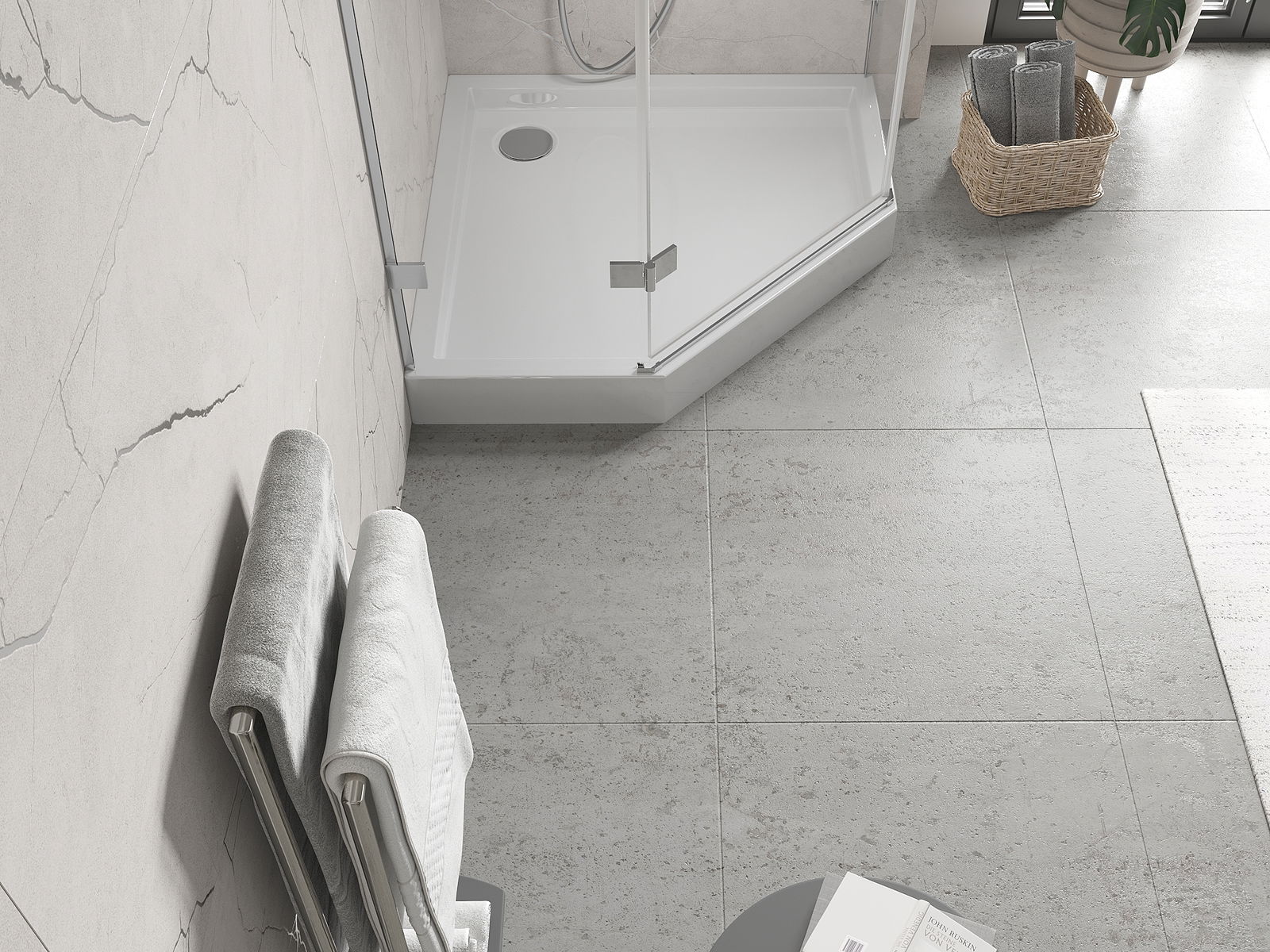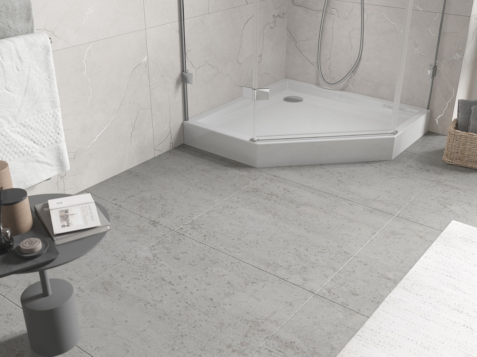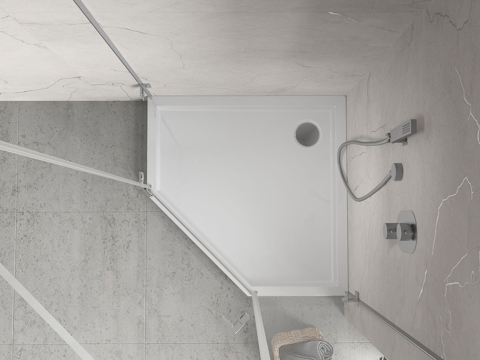 The shower tray is designed in such a way that water can freely flow towards the drain. It ensures quick and effective drainage of water from the surface of the shower tray, preventing the formation of puddles and flooding the bathroom.