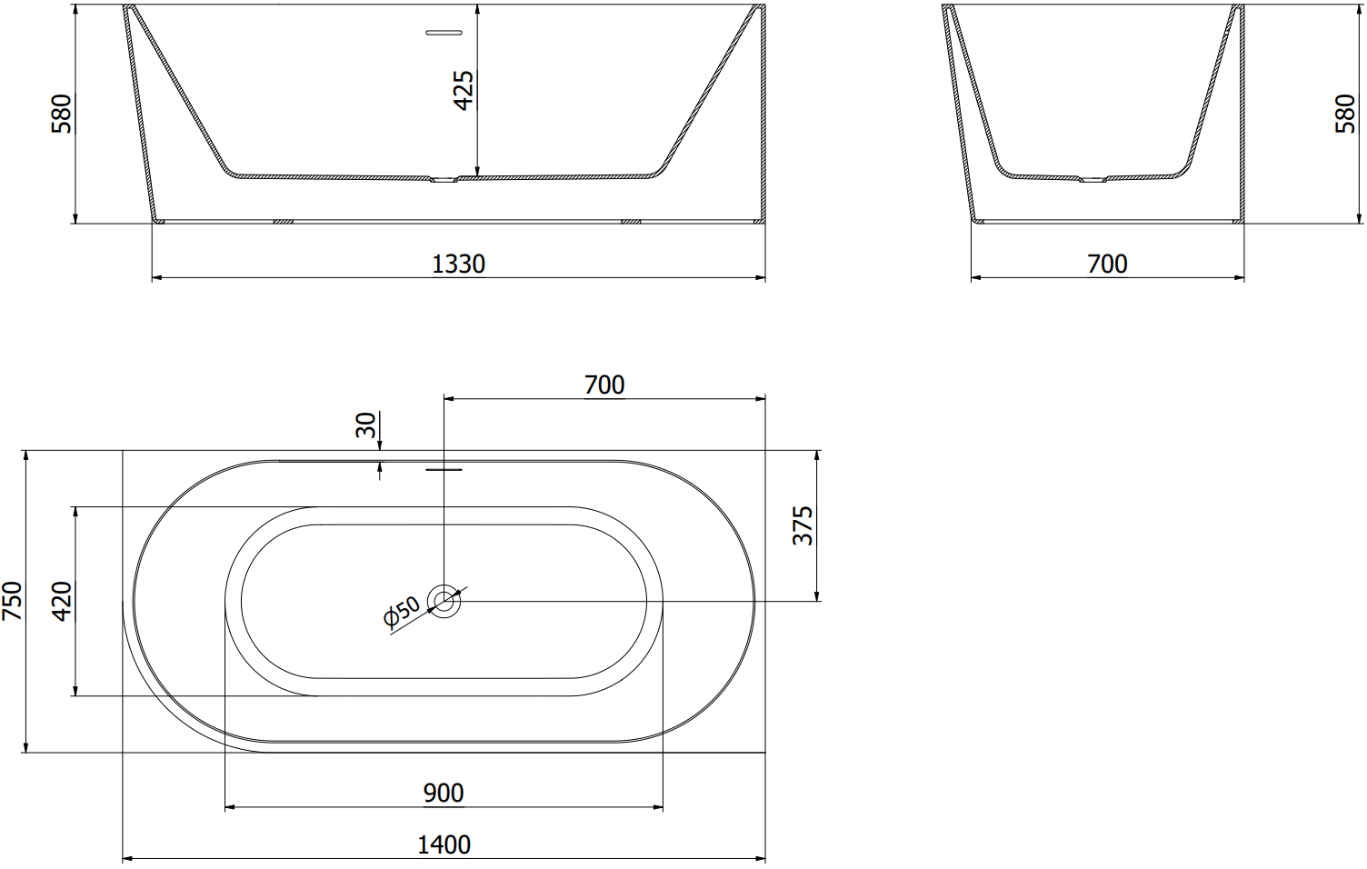 The overflow opening is referred to as the "safety opening". It allows excess water to escape, protecting the bathroom from flooding. This is a safe and practical solution that lets you enjoy a bath without worrying about the water level rising.