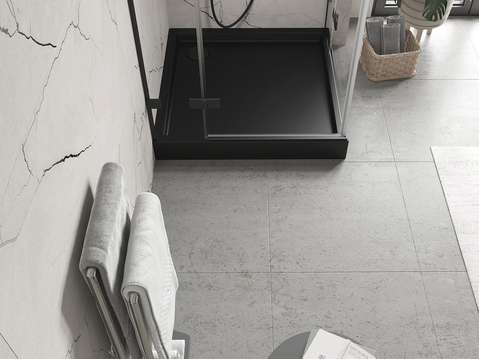 The shower tray is designed in such a way that water can freely flow towards the drain. It ensures quick and effective drainage of water from the surface of the shower tray, preventing the formation of puddles and flooding the bathroom.
