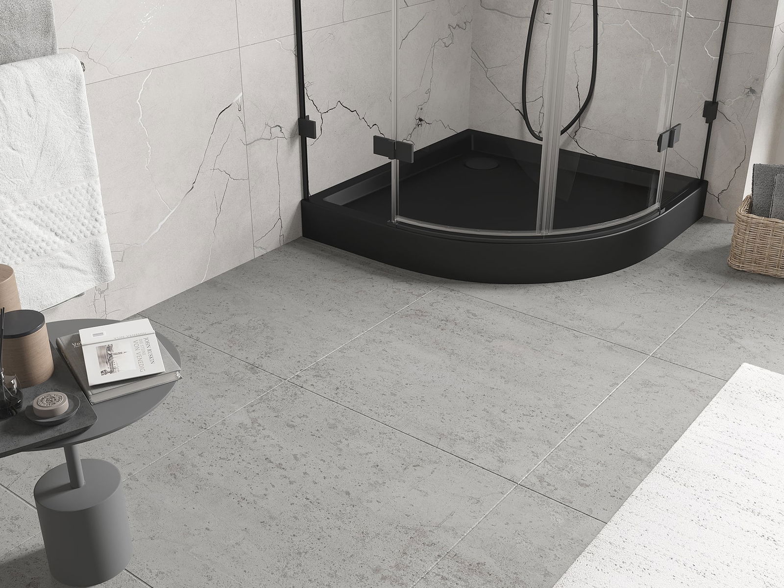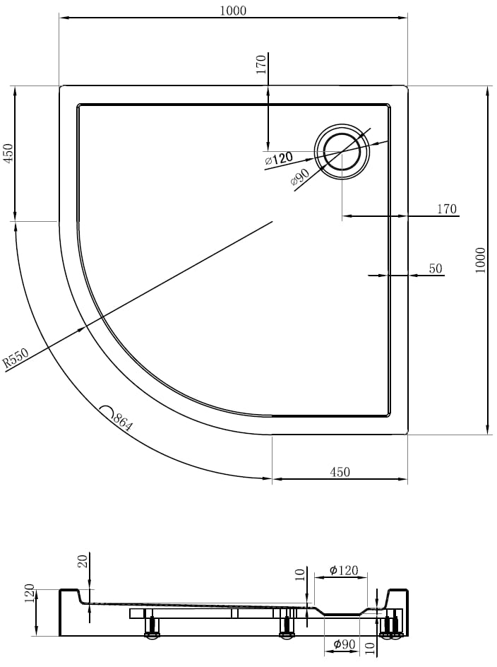 The shower tray is designed in such a way that water can freely flow towards the drain. It ensures quick and effective drainage of water from the surface of the shower tray, preventing the formation of puddles and flooding the bathroom.