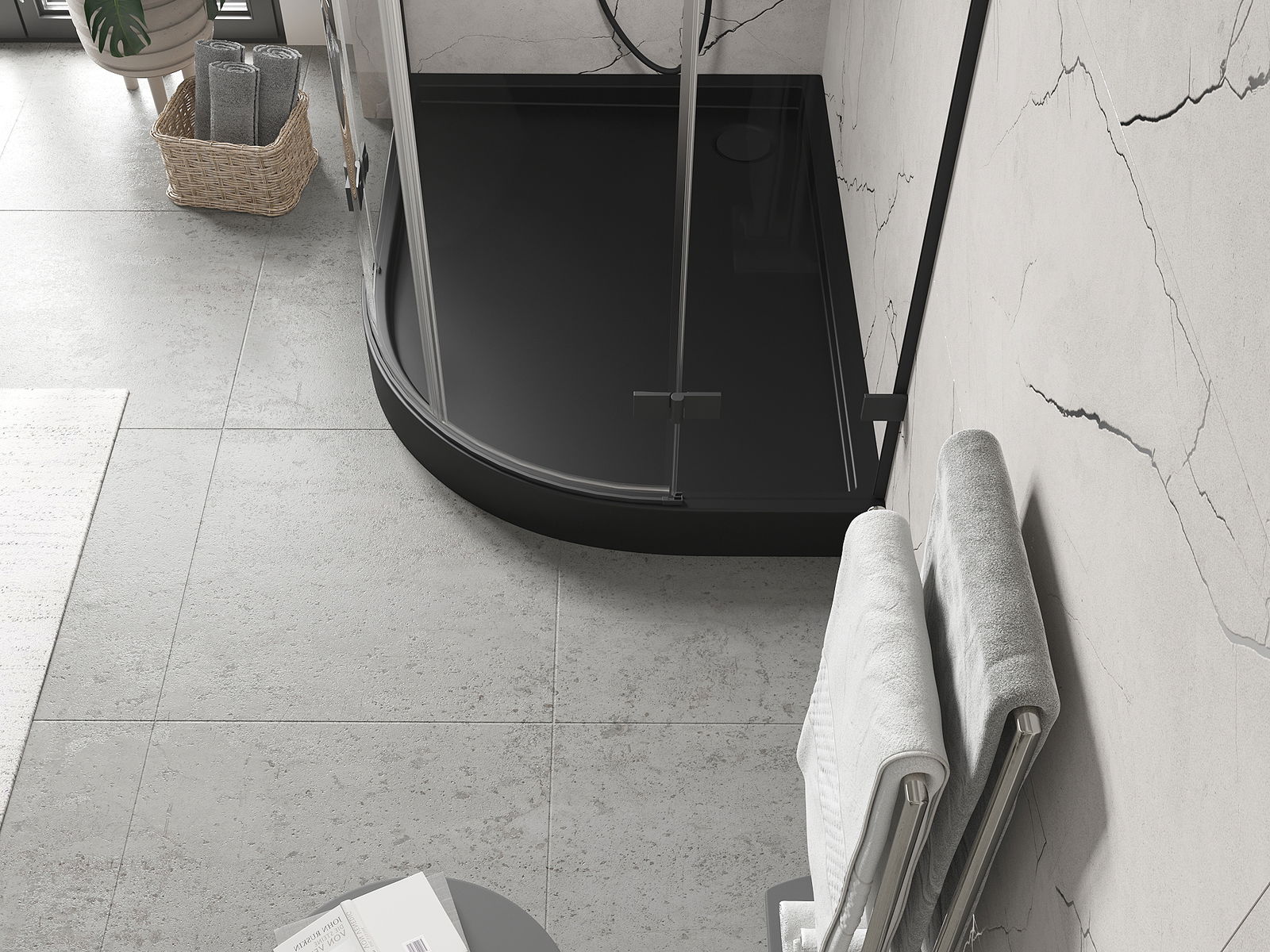 Mexen Flow+ semi-circular asymmetrical left shower tray 90 x 80 cm, black matte - 46Q708090LH