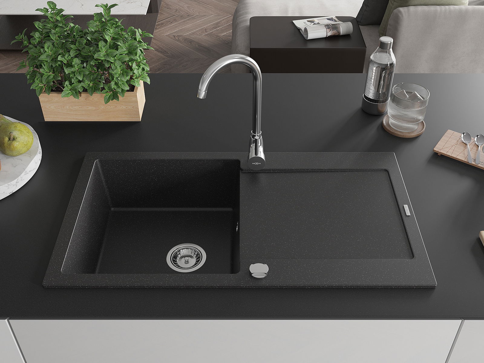 The sink is made of high quality granite. It is an elegant and, above all, practical complement to every kitchen, regardless of its style. High quality and granite durability ensure many years of use.