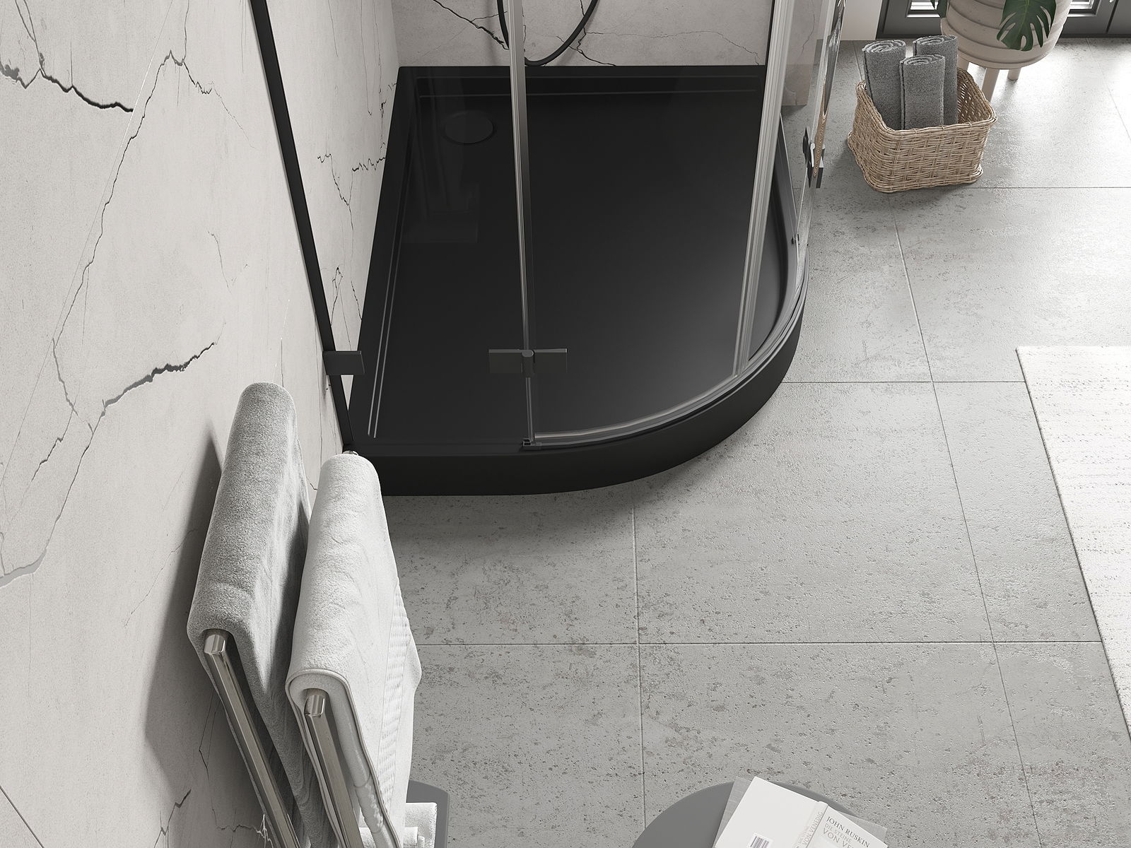 The shower tray is designed in such a way that water can freely flow towards the drain. It ensures quick and effective drainage of water from the surface of the shower tray, preventing the formation of puddles and flooding the bathroom.