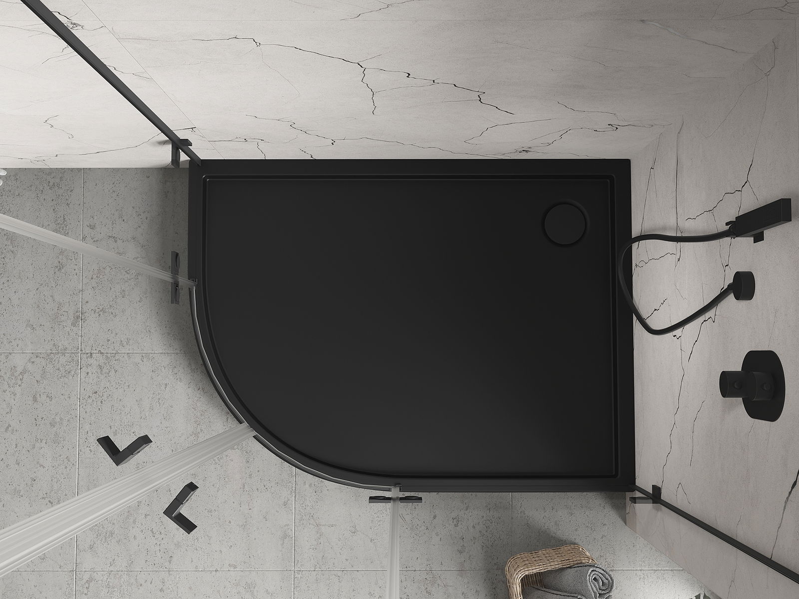 Mexen Flow+ asymmetrical right semi-circular shower tray 100 x 90 cm, black matte - 46Q709010RH