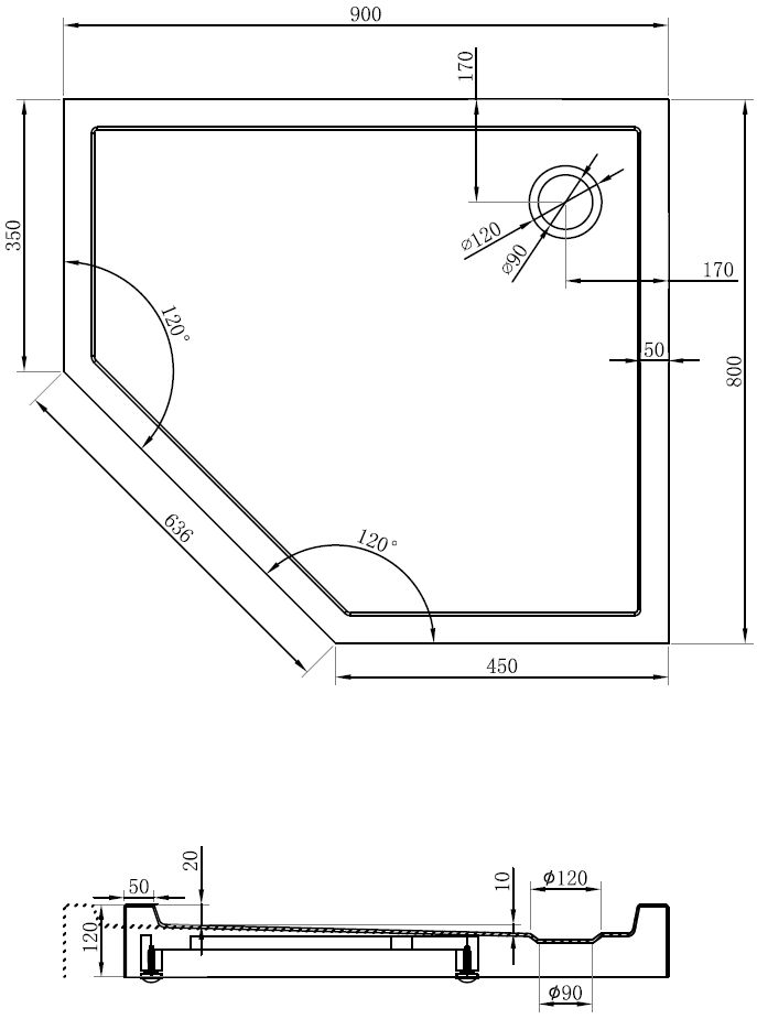 The shower tray is designed in such a way that water can freely flow towards the drain. It ensures quick and effective drainage of water from the surface of the shower tray, preventing the formation of puddles and flooding the bathroom.