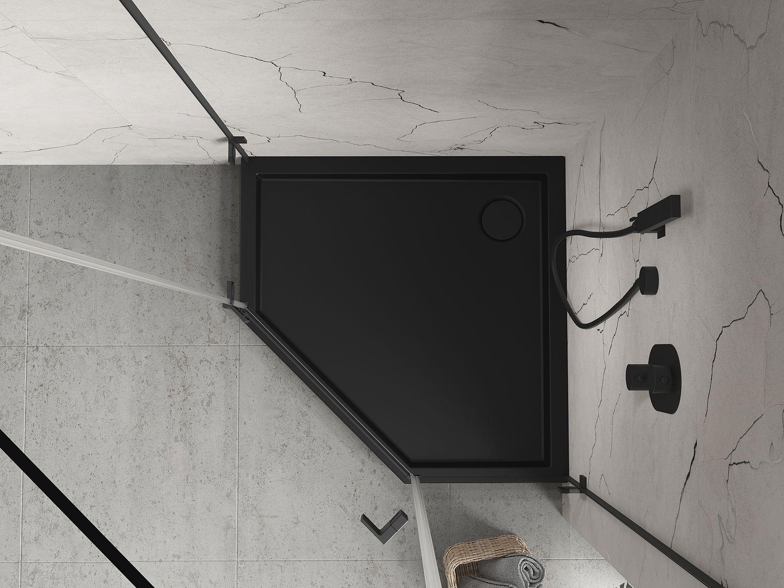 Mexen Flow+ pentagon shower tray 100 x 100 cm, black matte - 46P701010H