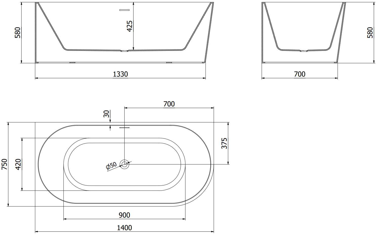 The overflow opening is referred to as the "safety opening". It allows excess water to escape, protecting the bathroom from flooding. This is a safe and practical solution that lets you enjoy a bath without worrying about the water level rising.