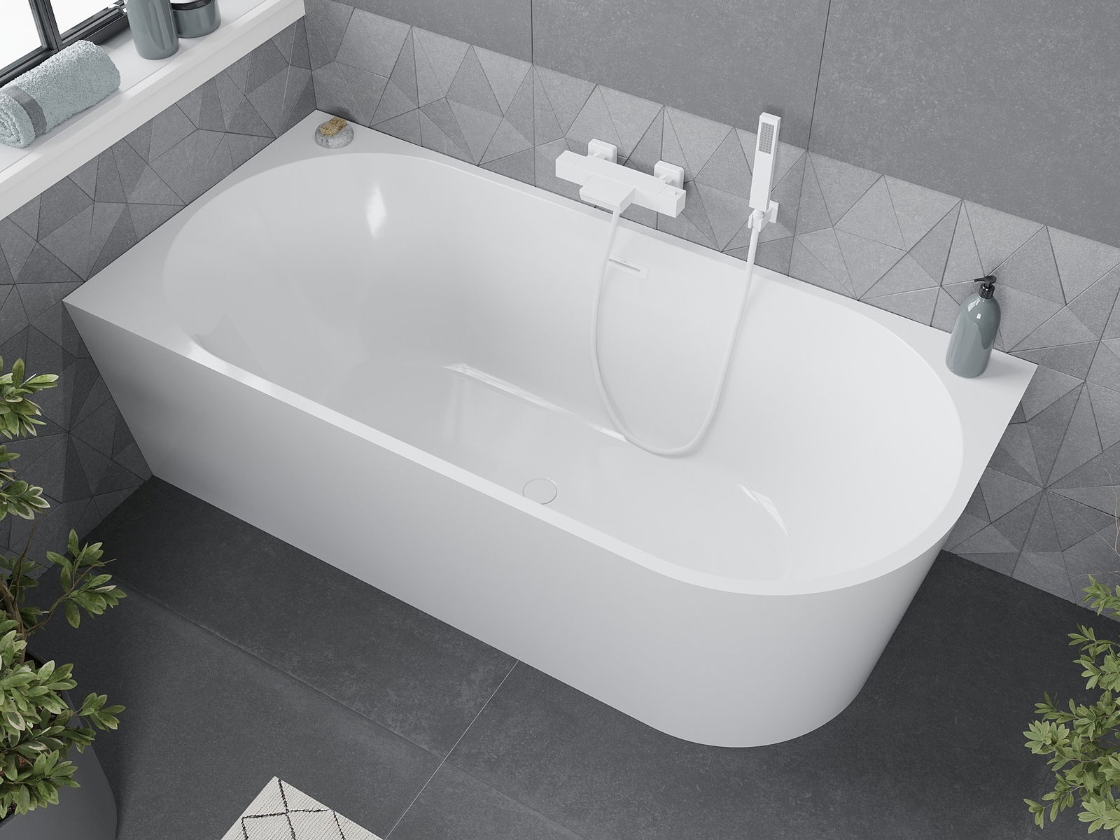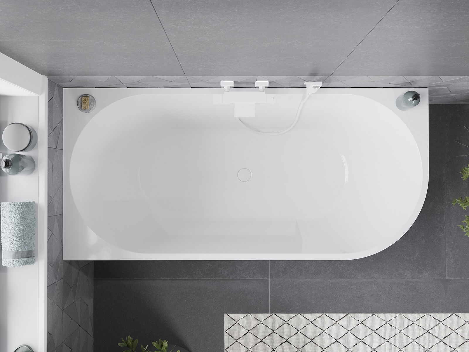 Mexen Mia freestanding corner bathtub left 160 x 80 cm, white, white overflow - 52691608000L-20
