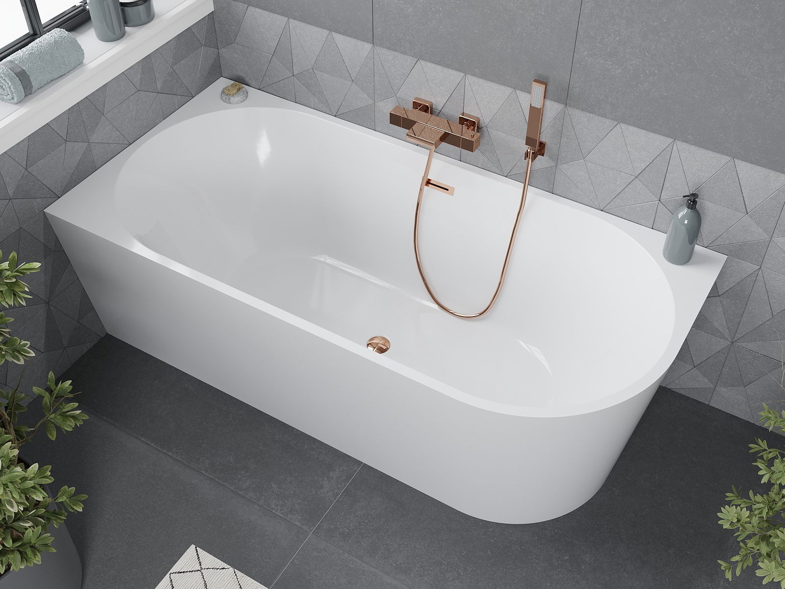 Mexen Mia freestanding corner bathtub left 160 x 80 cm, white, rose gold overflow - 52691608000L-60