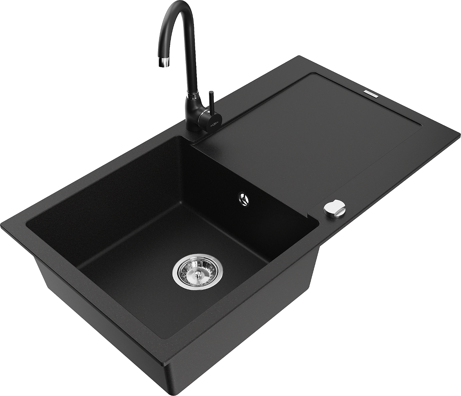 Mexen Leo granite sink 1-bowl with drainer and Telma kitchen tap, black - 6501-77-670200-70