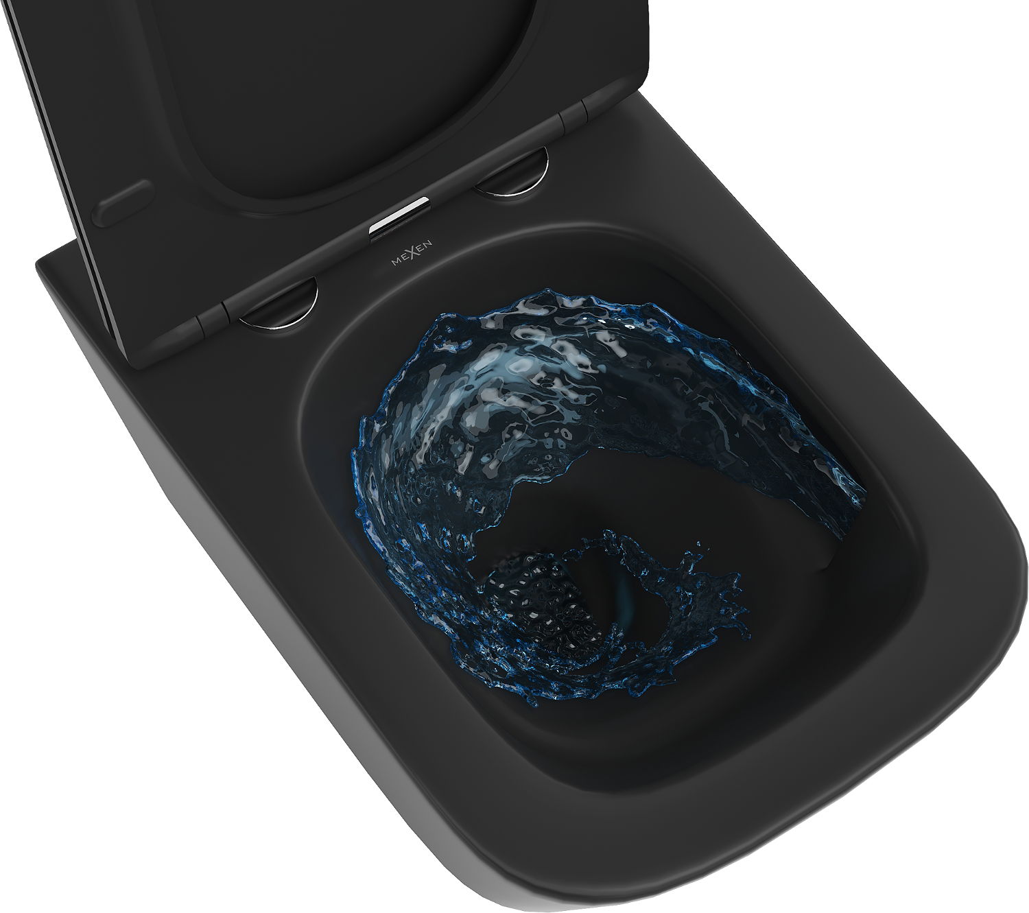 A system characterised by the absence of a traditional rim (rimless) and a specific spiral flushing system that resembles a whirlpool. The flushed water creates a "tornado" effect, quickly and effectively rinsing the entire surface of the bowl, which helps it clean better and prevents dirt from settling.