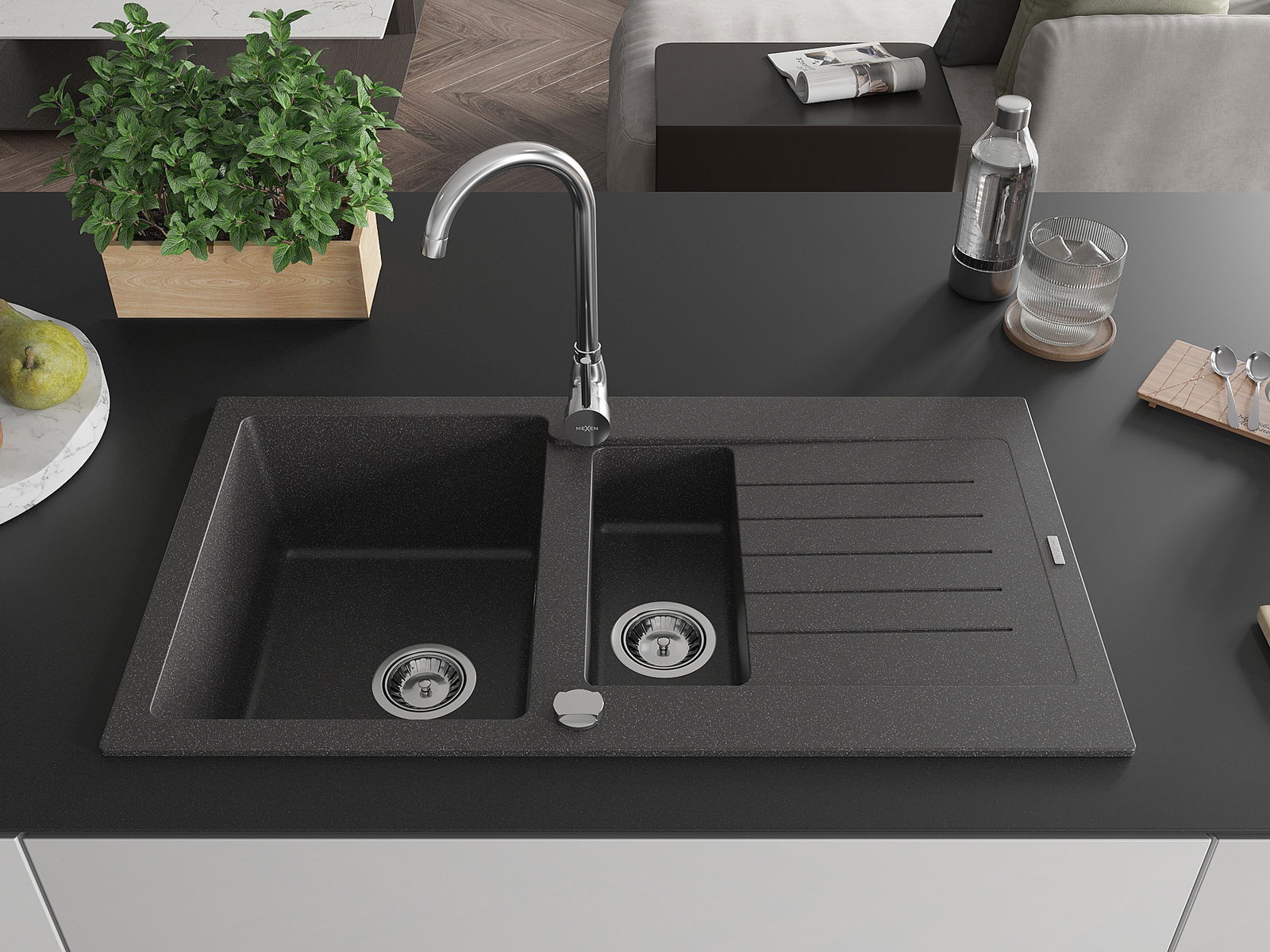 The sink is made of high quality granite. It is an elegant and, above all, practical complement to every kitchen, regardless of its style. High quality and granite durability ensure many years of use.