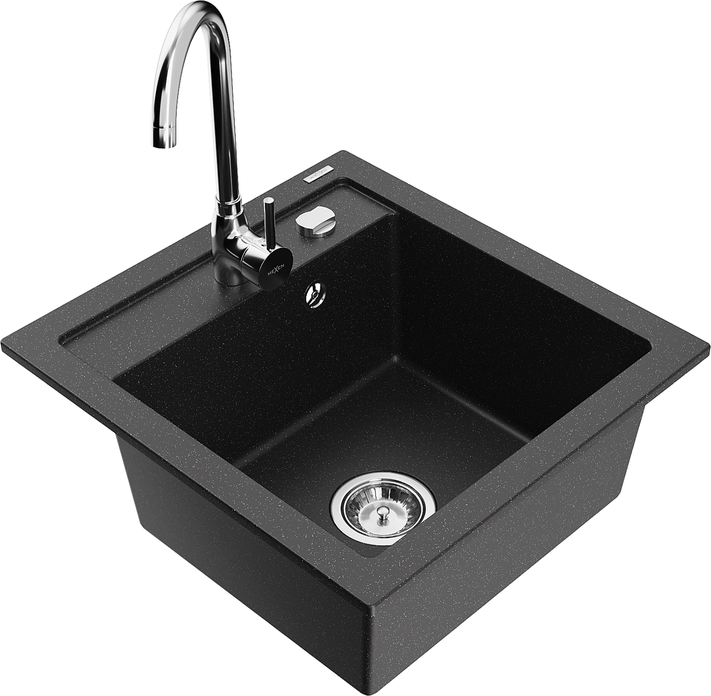 Mexen Vito Granite Sink 1-Bowl with Telma Kitchen Tap, Black/Silver Metallic - 6503-73-670200-00