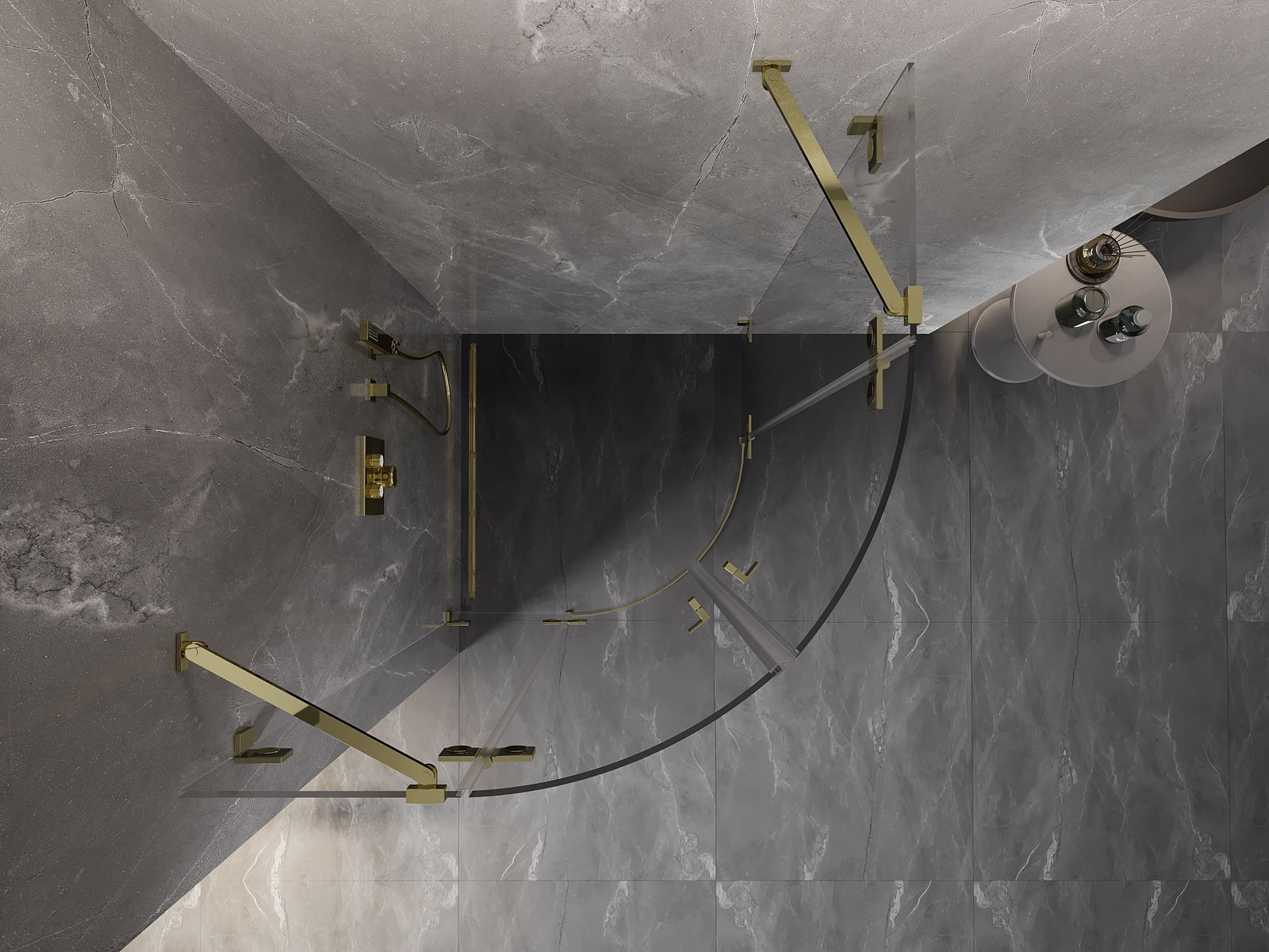 Mexen Lunar semi-circular swing shower cabin 80 x 80 cm, transparent, gold - 833-080L-080P-50-00