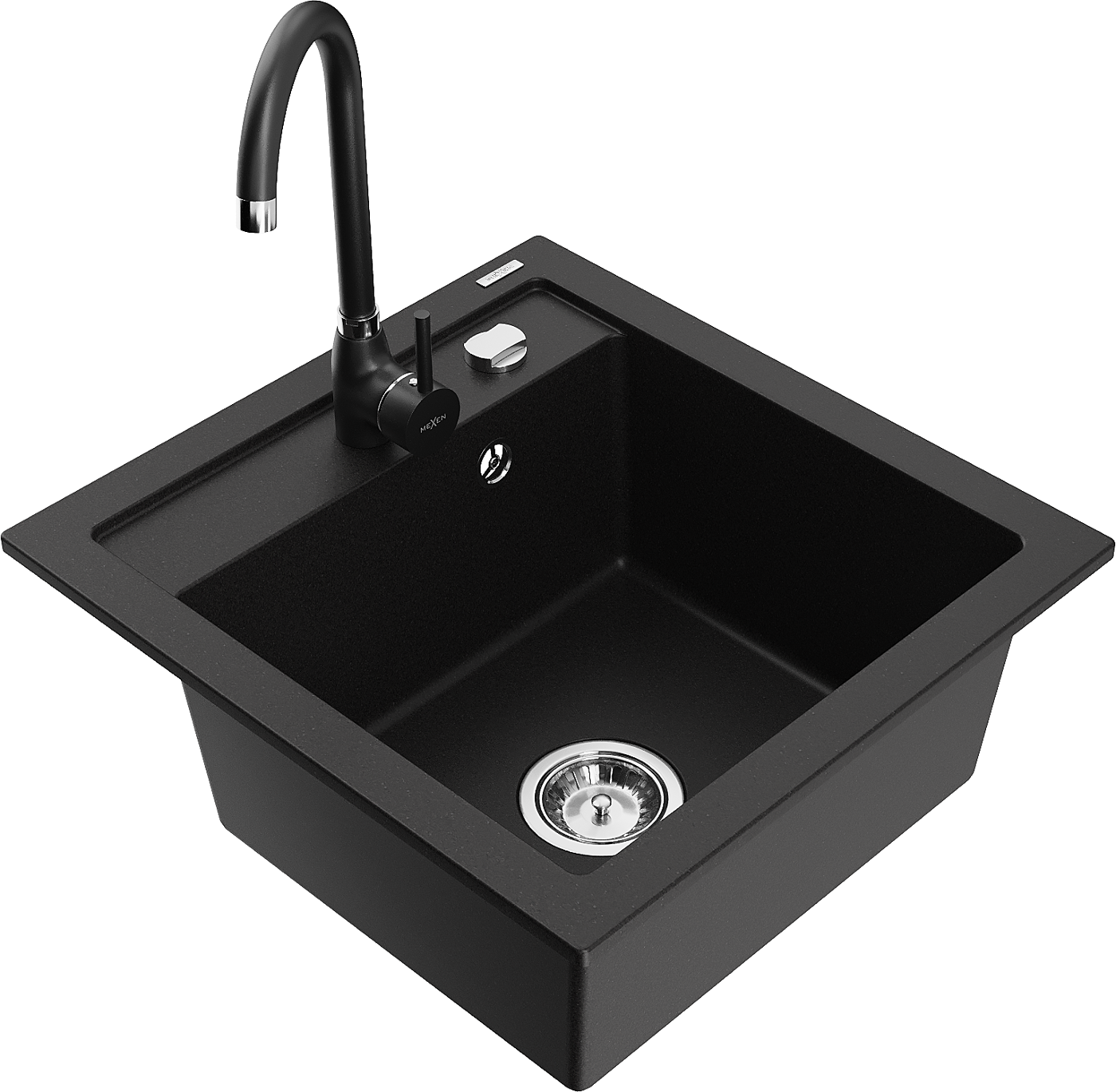 Mexen Vito granite kitchen sink 1-bowl with Telma kitchen tap, black - 6503-77-670200-70