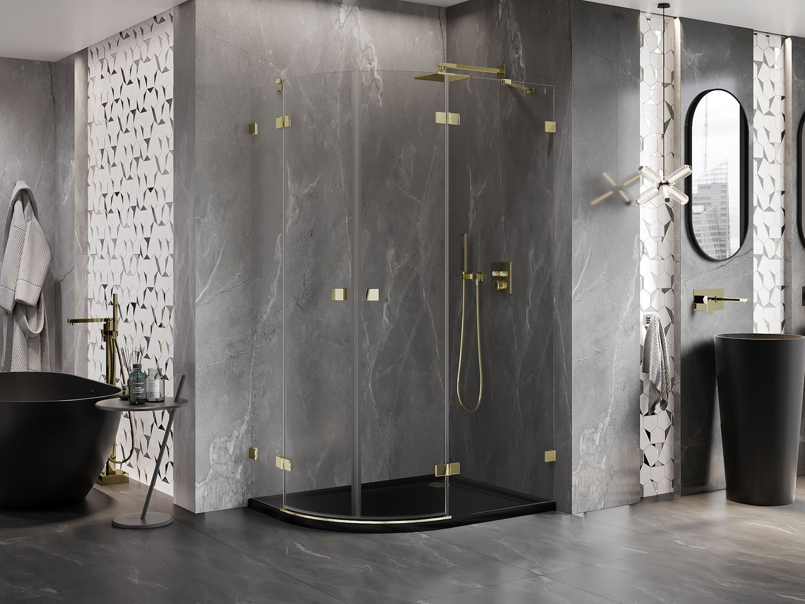 Mexen Lunar semi-circular right hinged shower enclosure 80 x 70 cm, transparent, gold - 833-080P-070L-50-00