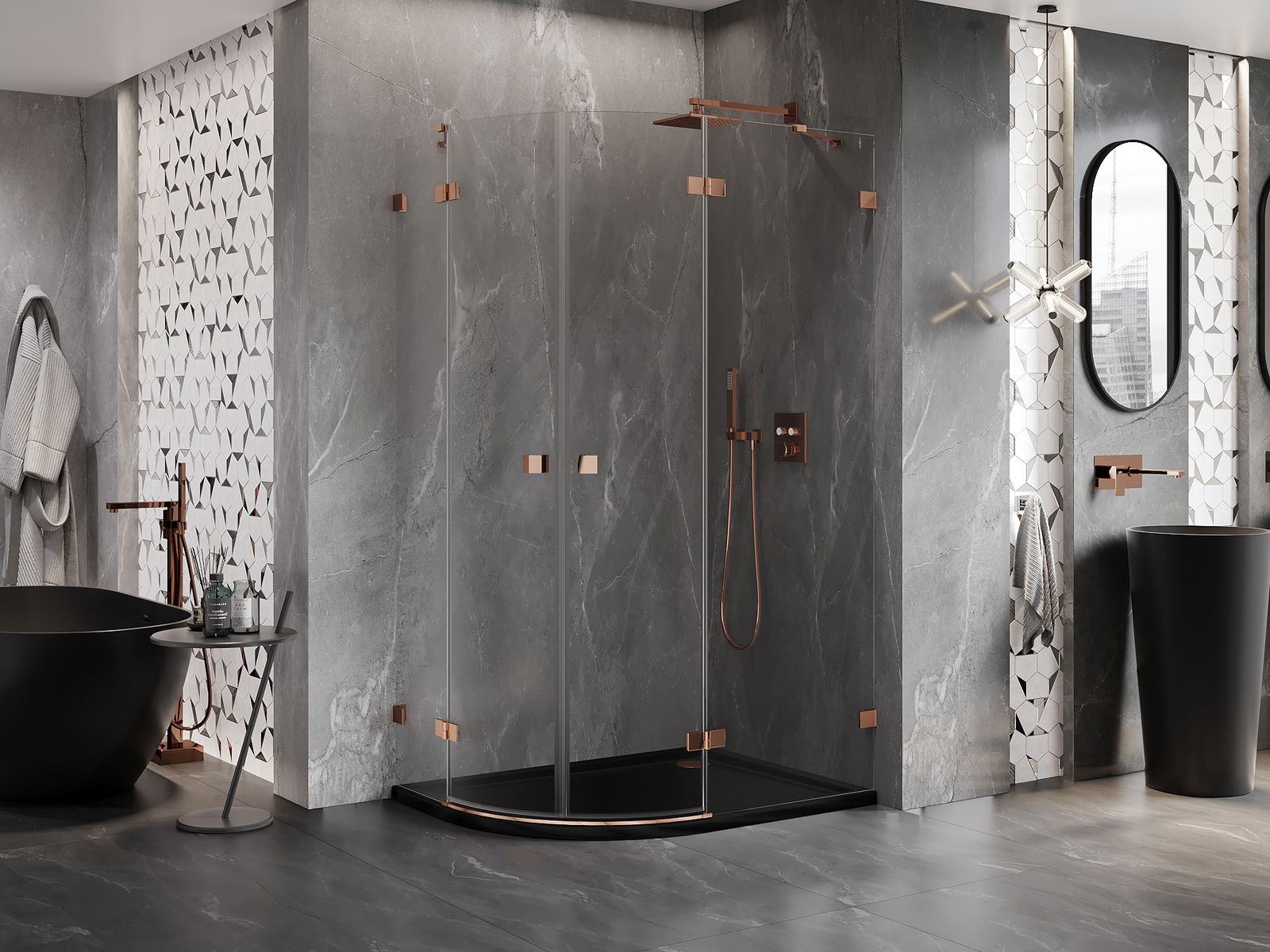Mexen Lunar semi-circular pivot shower cabin right 90 x 70 cm, transparent, rose gold - 833-090P-070L-60-00