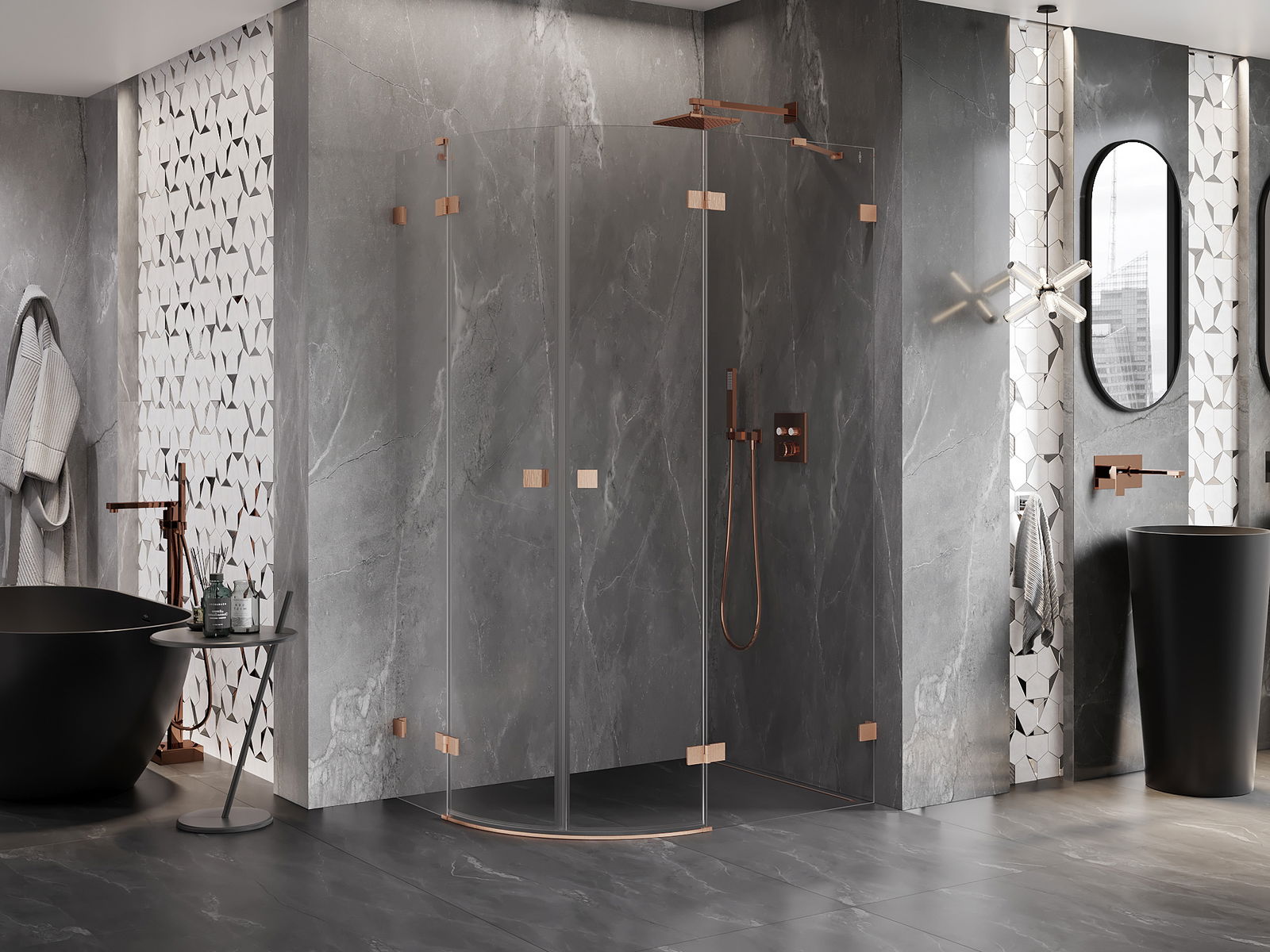 Mexen Lunar semi-circular shower enclosure right door 100 x 70 cm, transparent, brushed copper - 833-100P-070L-65-00
